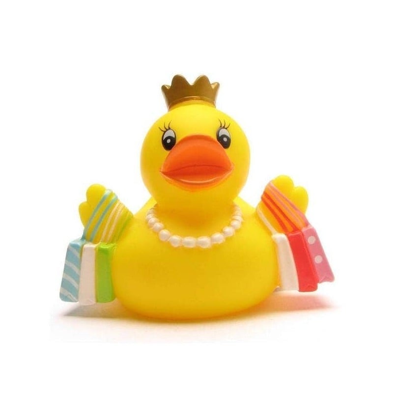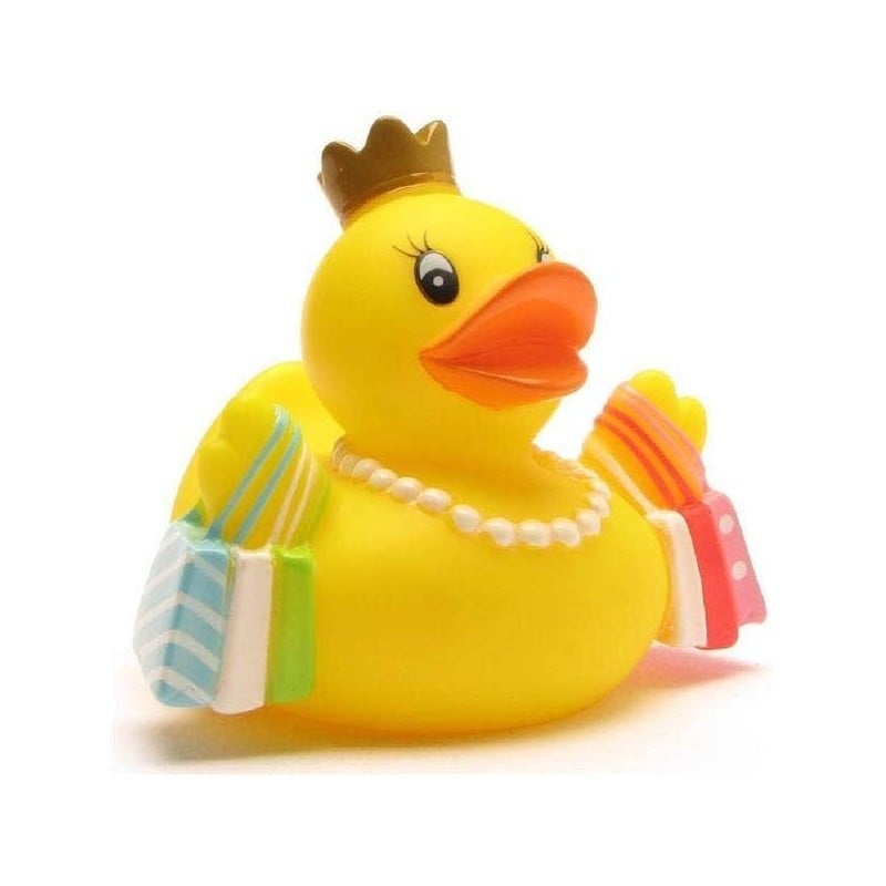 Ce canard de bain insolite est le compagnon idéal de tous ceux qui aiment le shopping ! Le canard de bain LiLaLu "Shopping-Queen" übe rzeugt avec son design charmant : avec sa couronne dorée, son sac à main rose et sa tenue à la mode, il est prêt pour la prochaine séance de shopping - même dans la baignoire.