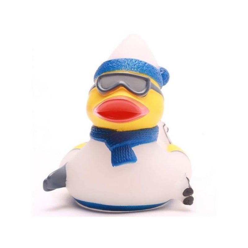 En route pour les pistes - ou plutôt pour la baignoire ? Le canard de bain LiLaLu au look de skieur apporte un charme hivernal et un plaisir sportif dans la salle de bain. Équipé de lunettes de ski, de skis et dune combinaison blanche chic avec des détails bleus, il est la star de chaque descente dans leau.