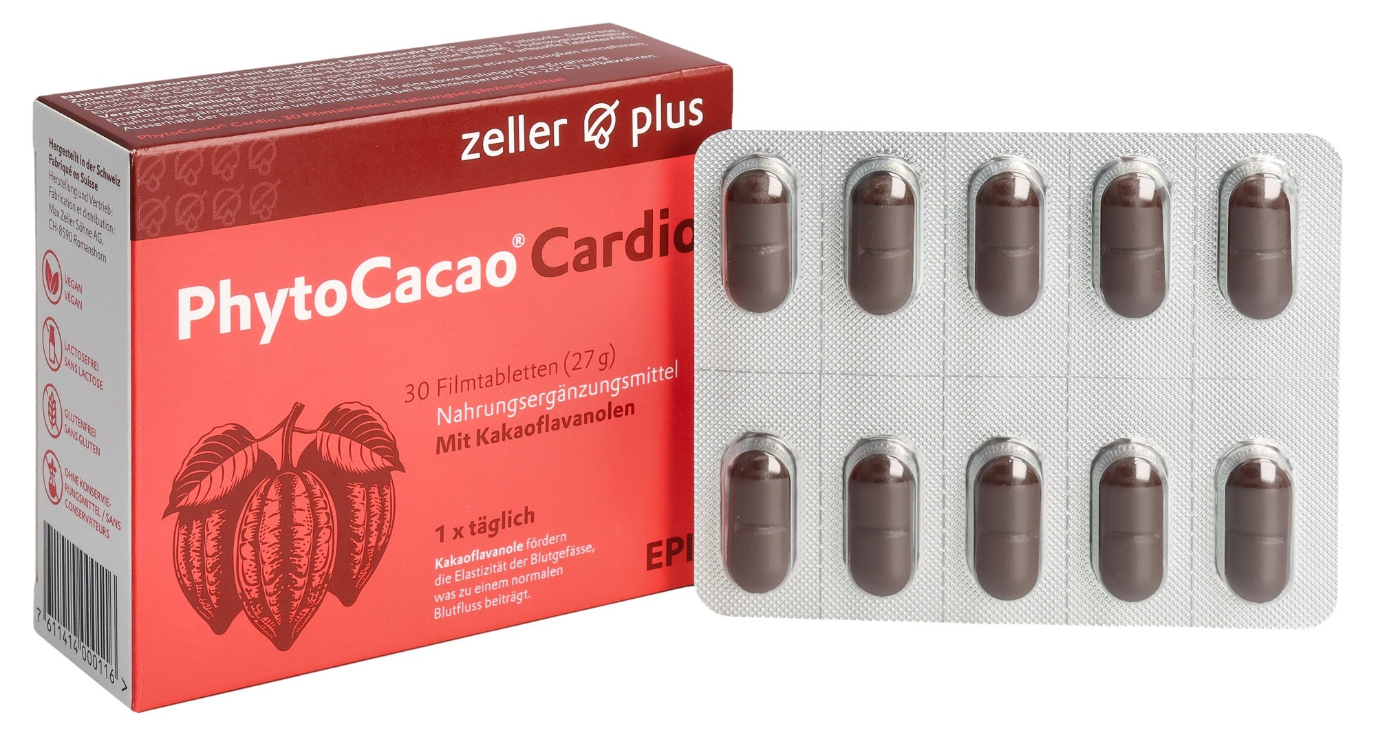 Ne pas dépasser la dose journalière recommandée. Les compléments alimentaires ne remplacent pas une alimentation équilibrée et un mode de vie sain. Conserver hors de portée des enfants, au sec, à l’abri de la lumière et à température ambiante (entre 15 et 25 °C). Veuillez consulter un médecin en cas d’allergies au cacao ou à d’autres composants. Si vous prenez des antihypertenseurs ou des anticoagulants, veuillez consulter votre médecin avant de prendre ce complément alimentaire. Fabriqué en Suisse.