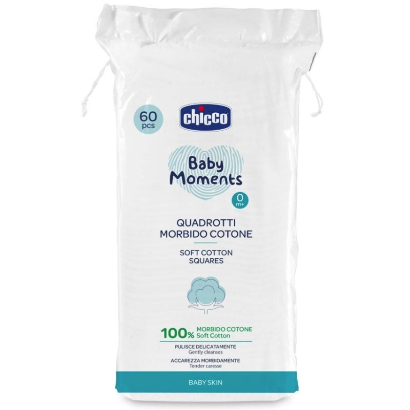 Les tampons douate carrés sont fabriqués à 100% en coton doux et sont particulièrement délicats pour la peau. Ils éliminent la saleté et les impuretés en profondeur, sans laisser de résidus, et sont idéaux pour les soins quotidiens de bébé. La peau de lenfant reste ainsi toujours propre et délicatement soignée.