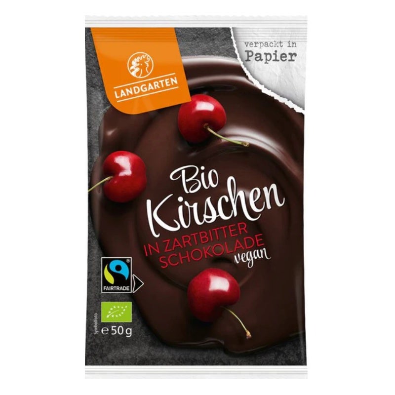 Zartbitter-Schokolade* 89% (Kakaomasse*, Rohrzucker*, Kakaobutter*, stark entöltes Kakaopulver*, Emulgator: Lecithin (SOJA*)), Amarenakirschen* 10% (Sauerkirschen* 85%, Invertzuckersirup*, natürliches Aroma), Überzugsmittel: Gummi arabicum* Zucker*, Dextrose*. *aus kontrolliert biologischem Anbau