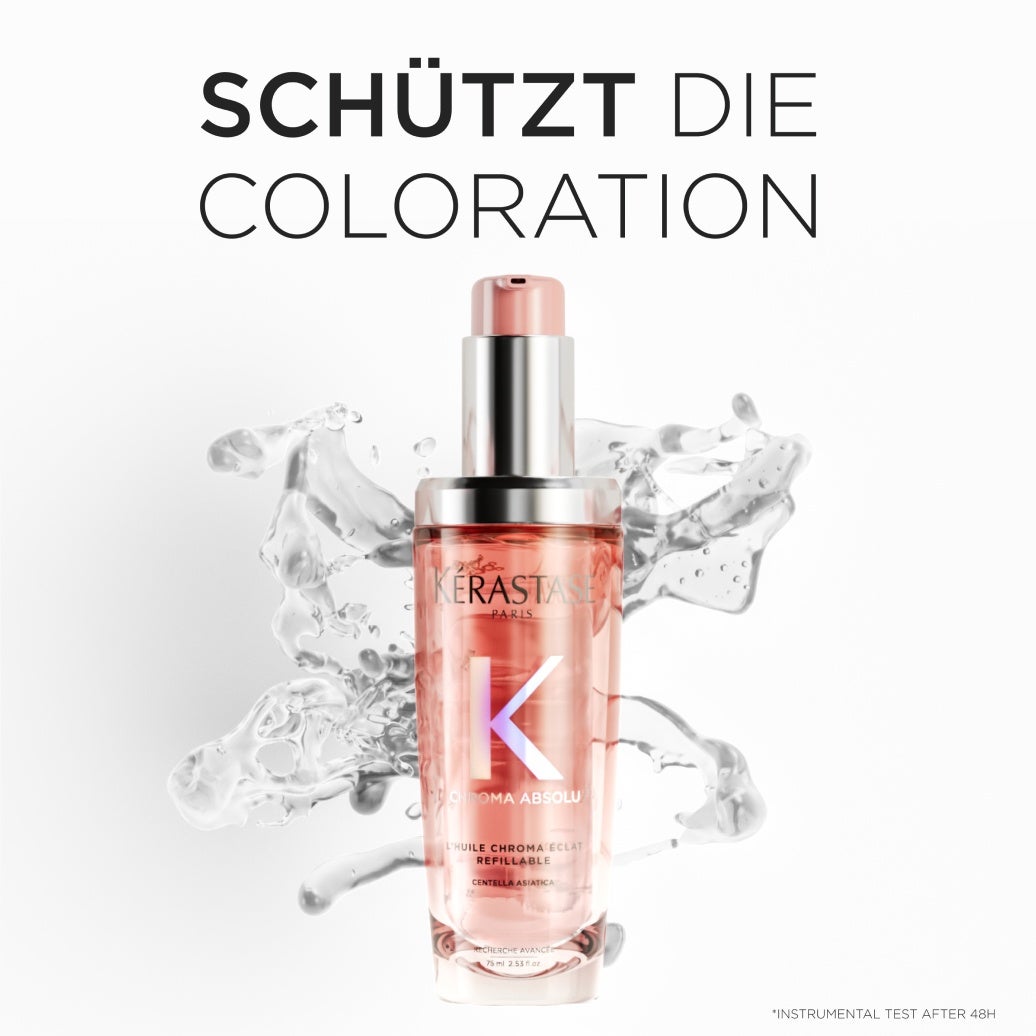 Chroma Absolu Huile Cicagloss de Kérastase est une huile réparatrice pour cheveux colorés. Il protège les cheveux contre la décoloration et garantit que la couleur reste éclatante plus longtemps. L'huile pénètre dans les cheveux, reconstitue l'hydratation dans les longueurs et forme une barrière protectrice. Avec des notes de cardamome équilibrées par la tubéreuse et la fleur d'oranger et une note de fond de bois de santal et de musc. Protection contre la chaleur jusqu'à 230 °C.