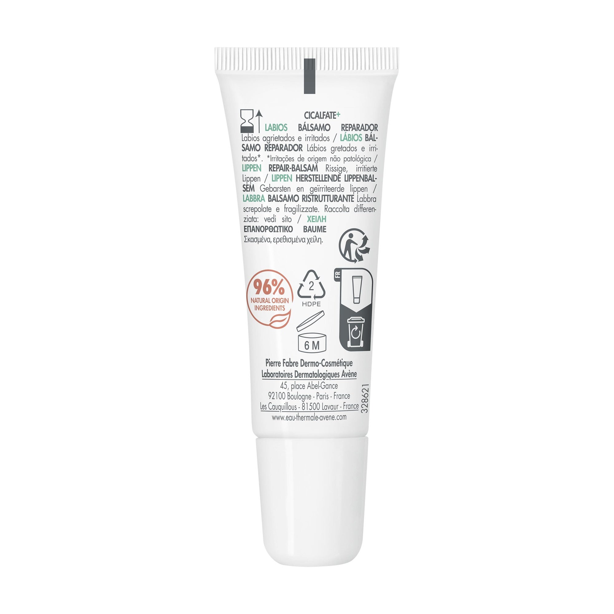 Formulé avec 96% d'ingrédients d'origine naturelle, ce soin destiné à toute la famille redonne confort et souplesse dès la première utilisation. Sa composition enrichie en [C+-Restore]™, un nouvel actif réparateur post-biotique et en Eau thermale d'Avène apaise et offre un effet barrière protectrice sur les lèvres. La nouvelle formule de ce baume réparateur pour les lèvres et les petites zones sèches localisées répare dès 48h** les lèvres gercées, très sèches, fissurées, irritées. Très résistant à l'eau, il protège, hydrate durablement pendant 24h** et nourrit intensément. Son packaging est éco-conçu : emballage comportant au moins 24% de matières recyclées. **Cinétique IH, 21 sujets, application unique. ***Cotation clinique. Etude de tolérance et d'efficacité sous contrôle dermatologique sur 56 sujets, au moins 4 applications par jour pendant 21 jours.