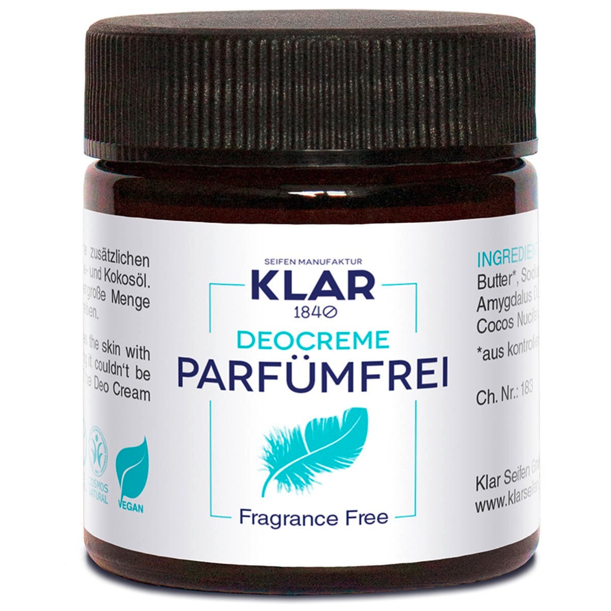 La crème déodorante sans parfum de Klar est une protection pure mais fiable contre les odeurs désagréables. Les ingrédients naturels que sont le bicarbonate de soude et le zinc réduisent la production de sueur, tandis que le beurre de karité, les huiles d'amande et de coco soignent la peau des aisselles. Comme nous renonçons à utiliser des parfums supplémentaires, des conservateurs, des silicones, des sels d'aluminium, de l'huile de palme et de l'alcool, la crème déodorante convient aux peaux particulièrement sensibles.
