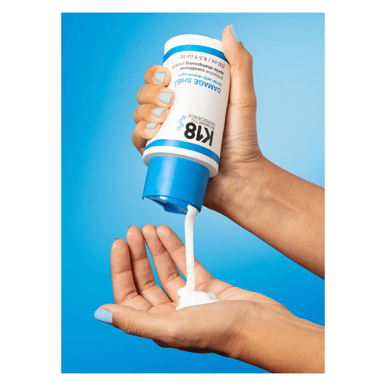 Un après-shampoing nourrissant et protecteur qui aide à protéger les cheveux des dommages quotidiens afin de préserver leur santé et d'améliorer leur douceur et leur brillance. Conçu pour adoucir et démêler sans poids, tandis que le K18PEPTIDE™ aide à reconstituer les cheveux pendant le lavage. Protège des dommages jusqu'à 3 jours contre: rayons UV, du coiffage mécanique et des agressions environnementales avantages principaux: Le polysaccharide issu de la biotechnologie agit comme un bouclier biomimétique pour protéger les cheveux contre la pollution et les agressions environnementales. Le mélange de céramides fortifiant scelle les sites endommagés dans la cuticule du cheveu - lissant et protégeant le cheveu contre d'autres dommages. K18PEPTIDE™ reconstitue les protéines perdues au cours du lavage.