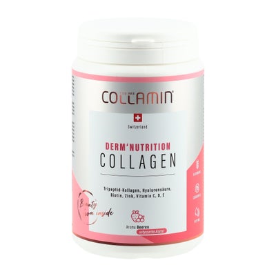 COLLAMIN Derm'Nutrition est un produit suisse équilibré à base de collagène, développé pour le soutien de la peau avec un collagène tripeptide unique qui est une forme minimale de collagène qui est rapidement absorbée et traitée par le corps afin de fournir des résultats plus rapides.