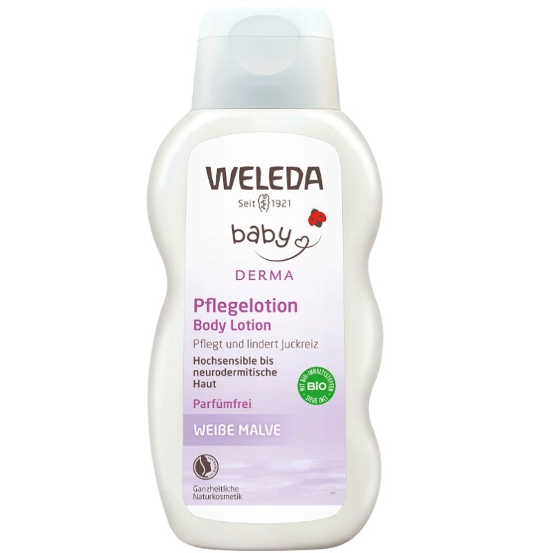 La lotion de soin 3en1 à la mauve blanche Weleda a été spécialement conçue pour répondre aux besoins de la peau très sensible des bébés. Elle a un effet bienfaisant, hydrate intensément et rafraîchit la peau en douceur. Grâce aux précieux extraits de mauve blanche bio et de pensée sauvage, cette lotion douce favorise la régénération de la peau, apaise les démangeaisons et calme les irritations cutanées. La formulation particulièrement douce convient également aux bébés à la peau à tendance atopique et soigne durablement.