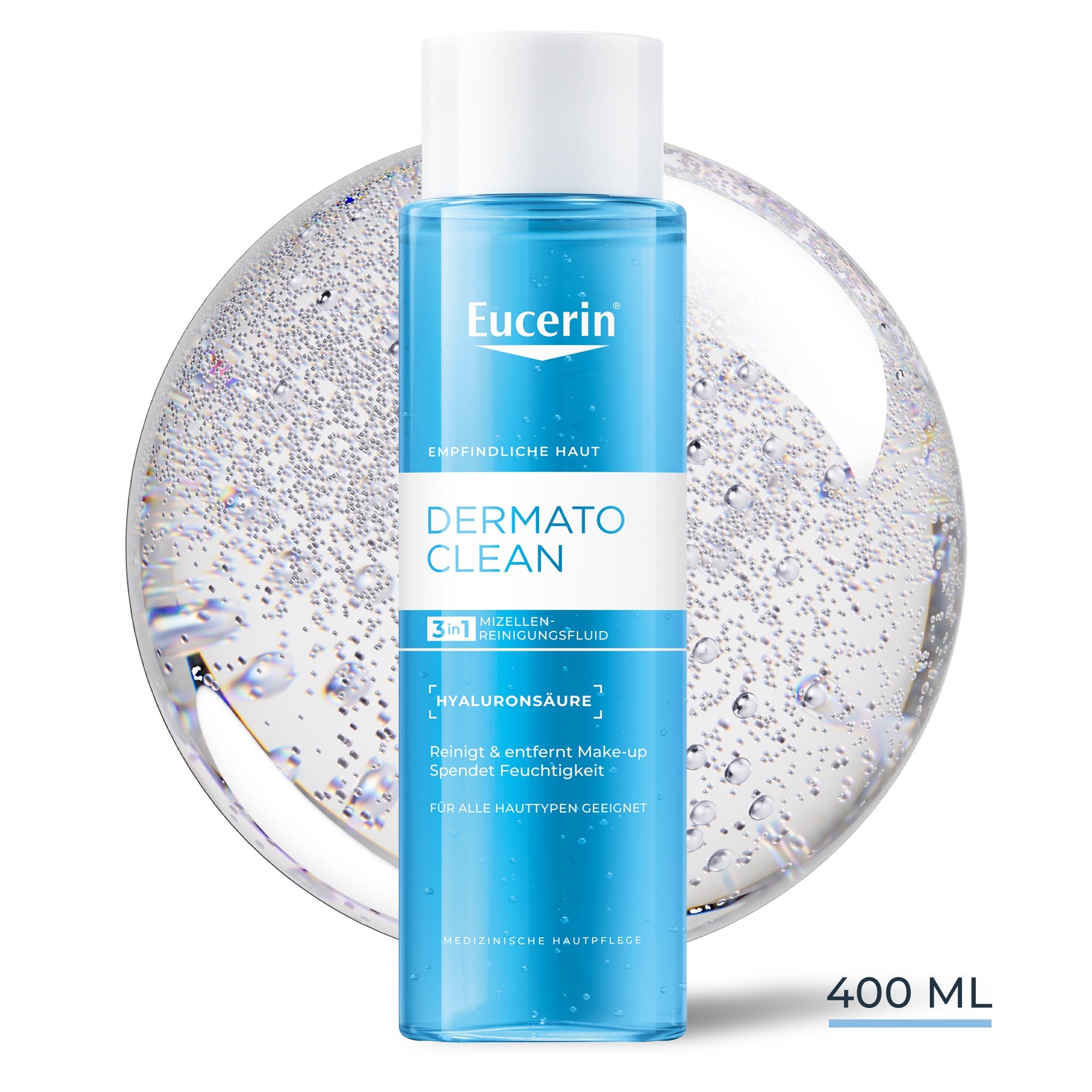 L'Eau Micellaire 3en1 Eucerin DermatoCLEAN [HYALURON] est un nettoyant rapide et pratique pour le visage qui convient à tous les types de peau, y compris les peaux sensibles.