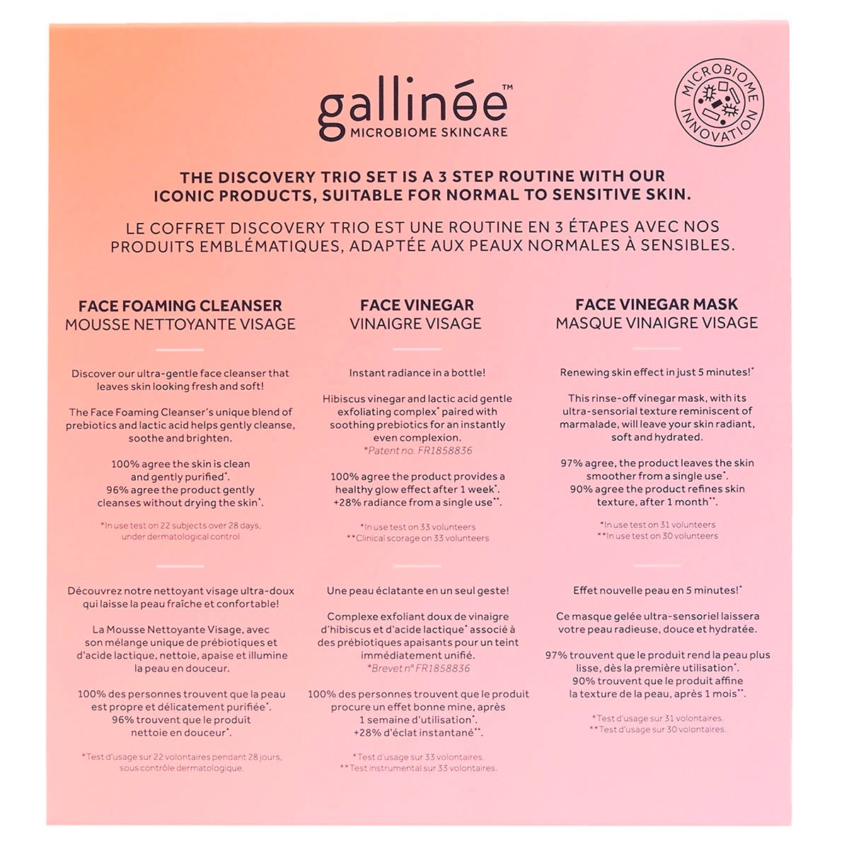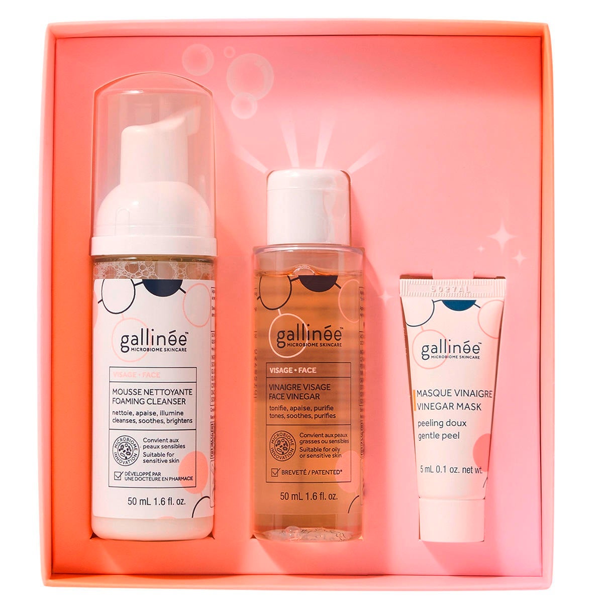 FOAMING FACIAL CLEANSER: AQUA (WATER), COCAMIDOPROPYL BETAINE, SODIUM LAURYL GLUCOSE CARBOXYLATE, LAURYL GLUCOSIDE, GLYCERIN, LACTIC ACID, ALPHA-GLUCAN OLIGOSACCHARIDE, INULIN, STYRENE/ACRYLATES COPOLYMER, ARGININE, SODIUM CITRATE, TETRASODIUM GLUTAMATE DIACETATE, SODIUM HYDROXIDE, SODIUM BENZOATE, SORBIC ACID, PARFUM (FRAGRANCE), LIMONENE, CITRUS AURANTIUM PEEL OIL. FACE VINEGAR: AQUA (WATER), PROPANEDIOL, GLYCERIN, 1,2-HEXANEDIOL, ALPHA-GLUCAN OLIGOSACCHARIDE, PENTYLENE GLYCOL, INULIN, LACTIC ACID, ACETUM (VINEGAR), MARIS AQUA (SEA WATER), ARGININE, HIBISCUS SABDARIFFA FLOWER EXTRACT, LAMINARIA DIGITATA EXTRACT, CHLORELLA VULGARIS EXTRACT, SACCHARIDE ISOMERATE, SODIUM HYDROXIDE, PHENETHYL ALCOHOL, SODIUM BENZOATE, POTASSIUM SORBATE. FACE VINEGAR MASK: AQUA (WATER), GLYCERIN, GLUCONOLACTONE, PROPANEDIOL, INULIN, SCLEROTIUM GUM, SODIUM HYDROXIDE, LACTIC ACID, ALPHA-GLUCAN OLIGOSACCHARIDE, ACETUM (VINEGAR), HIBISCUS SABDARIFFA FLOWER EXTRACT, LAMINARIA DIGITATA EXTRACT, CHLORELLA VULGARIS EXTRACT, MARIS AQUA (SEA WATER), ARGININE, CELLULOSE GUM, 1,2-HEXANEDIOL, XANTHAN GUM, DECYL GLUCOSIDE, ACACIA SENEGAL GUM, CELLULOSE, FRUCTOSE, GLUCOSE, PHENETHYL ALCOHOL, SACCHARIDE ISOMERATE, HYDROXYACETOPHENONE, TETRASODIUM GLUTAMATE DIACETATE, SODIUM BENZOATE, POTASSIUM SORBATE