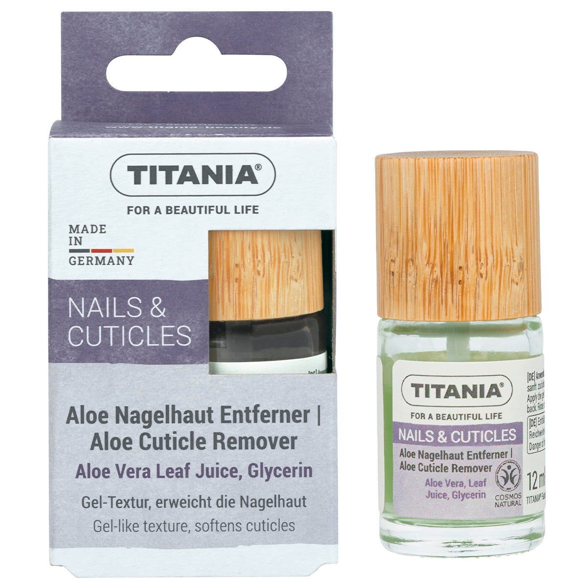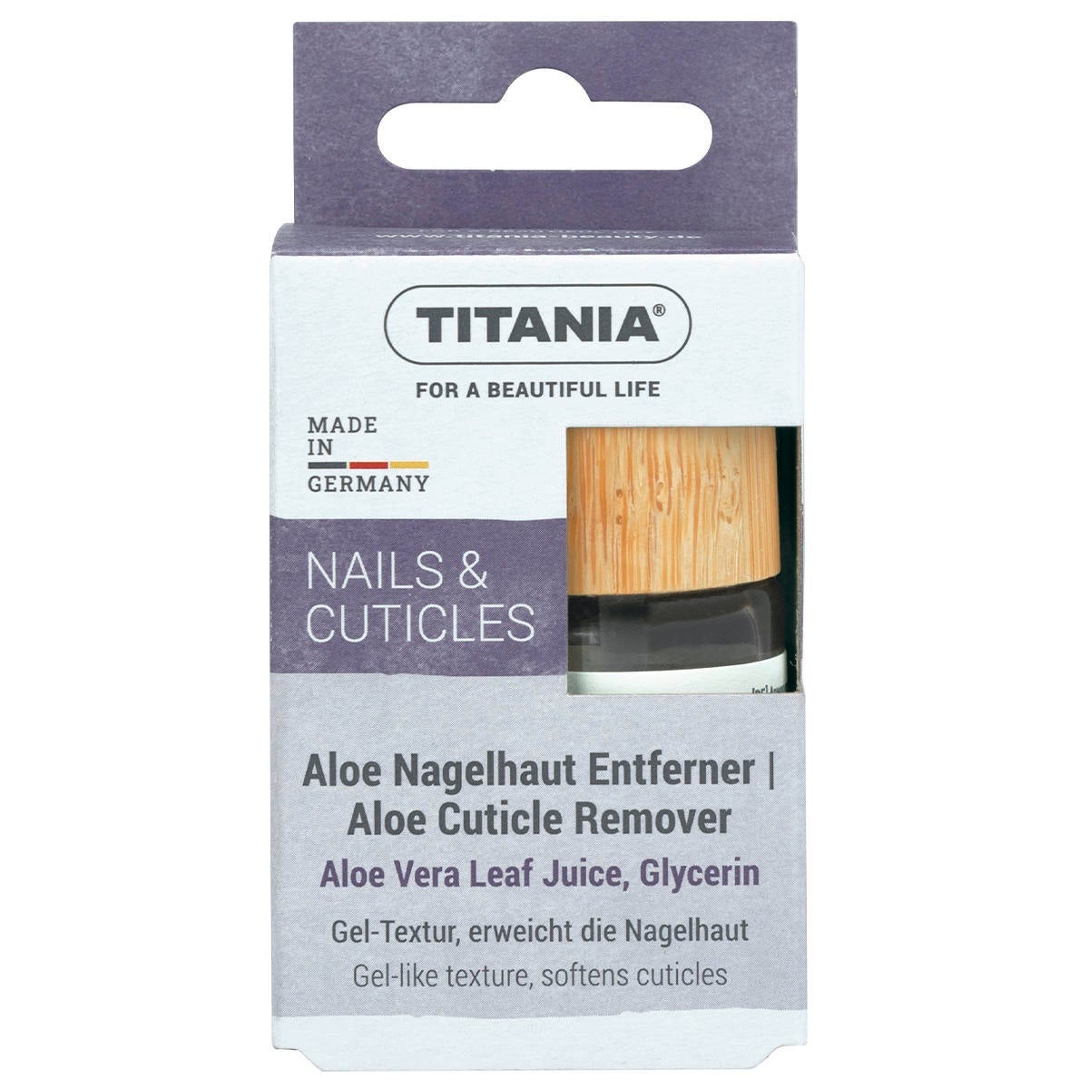 Texture gel, ramollit les cuticules. Le dissolvant pour cuticules à l'aloès TITANIA® aide à éliminer les cuticules en profondeur et en douceur. La texture gel ne coule pas et soigne grâce à l'aloe vera. Application : Appliquer le gel sur les cuticules, laisser agir 1 à 2 minutes et repousser délicatement. Rincer ensuite abondamment à l'eau.