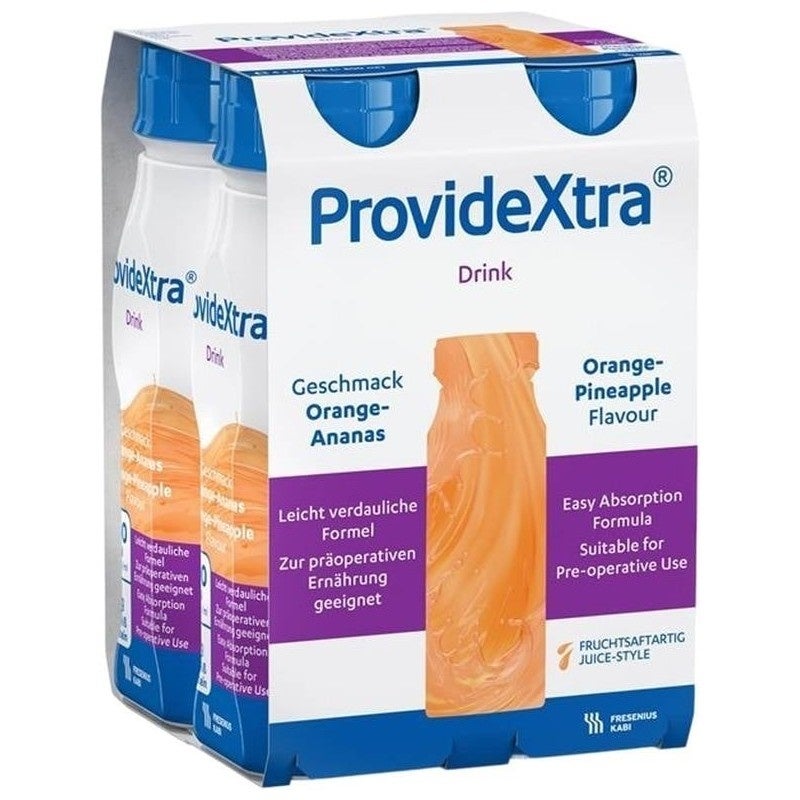 Wasser, Maltodextrin, Zucker, Erbseneiweisshydrolysat, Orangensaftkonzentrat, Säureregulator (E 330), Calciumcitrat, Magnesiumcitrat, Aromen, Vitamin C, Kaliumchlorid, Magnesiumchlorid, Stabilisator (E 440), Eisencitrat, Vitamin E, Zinksulfat, Niacin, Pantothensäure, Schaumverhüter (E 471), Manganchlorid, Kupfersulfat, Vitamin B6, Vitamin B2, Natriumfluorid, Vitamin B1, Vitamin A, Folsäure, Kaliumjodid, Chromchlorid, Natriumselenit, Vitamin K1, Natriummolybdat, Biotin, Vitamin D3, Vitamin B12.