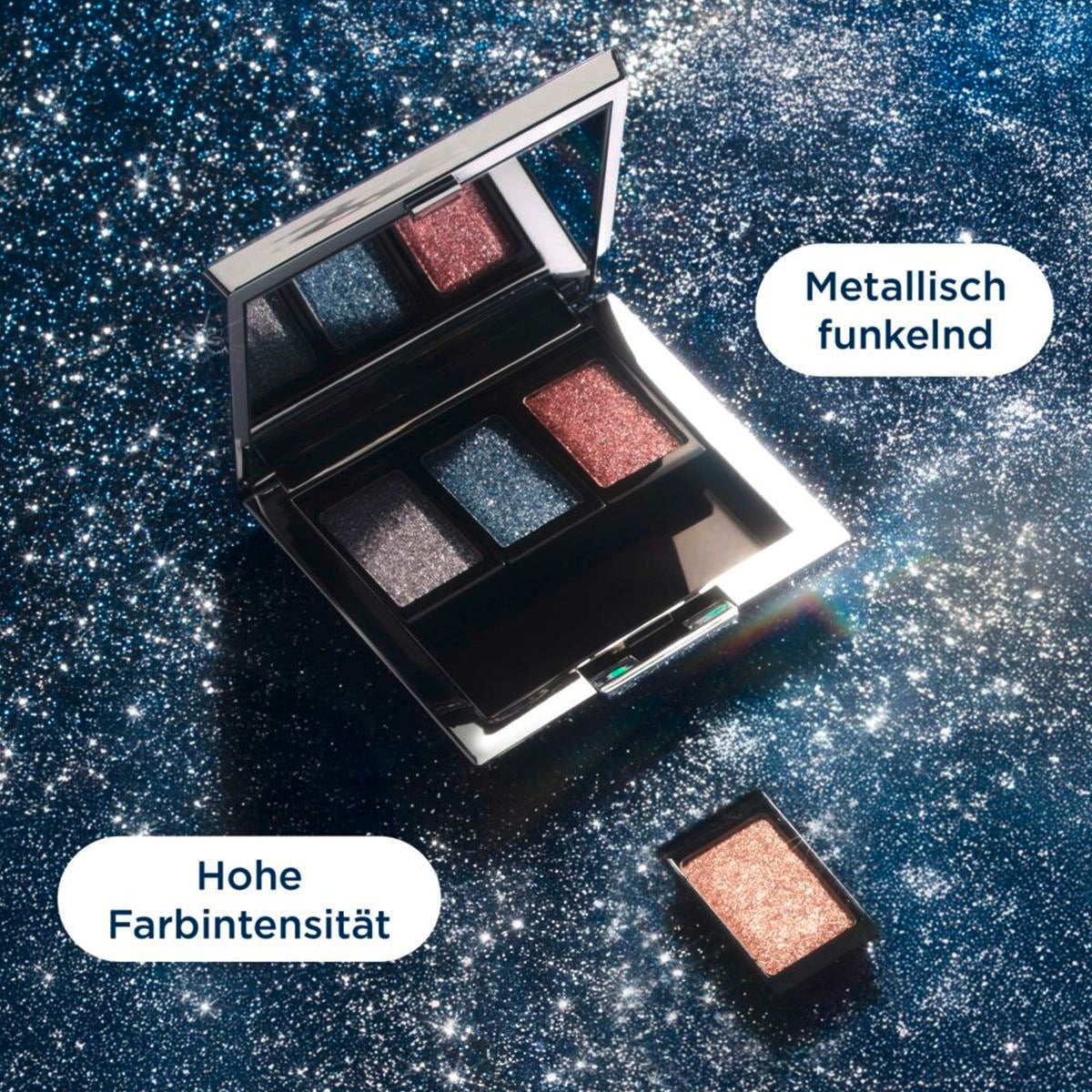 Votre it-pièce pour une apparence glamour ! Pour une apparence expressive et sûre d'elle, les bijoux d'ombres à paupières sont le bon choix. La texture innovante permet une application douce et crémeuse et laisse votre paupière briller d'un éclat métallique coloré. Qu'ils soient étincelants ou métalliques - le choix vous appartient ! Les perles métalliques et les pigments scintillants microfins et intensément brillants donnent à vos yeux un effet WOW instantané ! Avec le reflet multidimensionnel et pailleté qui en résulte sur votre paupière, vous attirerez tous les regards ! Que ce soit à la maison ou pour se rafraîchir en déplacement, les bijoux d'ombres à paupières peuvent être rangés de manière pratique dans la boîte de beauté magnétique grâce à l'aimant intégré. C'est ainsi que l'on devient un véritable accroche-regard avec un maquillage expressif des yeux ! Application : Améliorez la durabilité de votre ombre à paupières en utilisant la base pour ombre à paupières. Appliquez l'ombre à paupières sur votre paupière avec un applicateur d'ombre à paupières. Pour obtenir un effet scintillant complet, prenez les pigments à l'aide de l'applicateur d'ombre à paupières et appliquez-les délicatement sur votre paupière. Puis, estompez l'ombre à paupières avec un pinceau doux. Conseil de pro : Vous pouvez facilement définir des reflets intenses en les appliquant du bout du doigt.