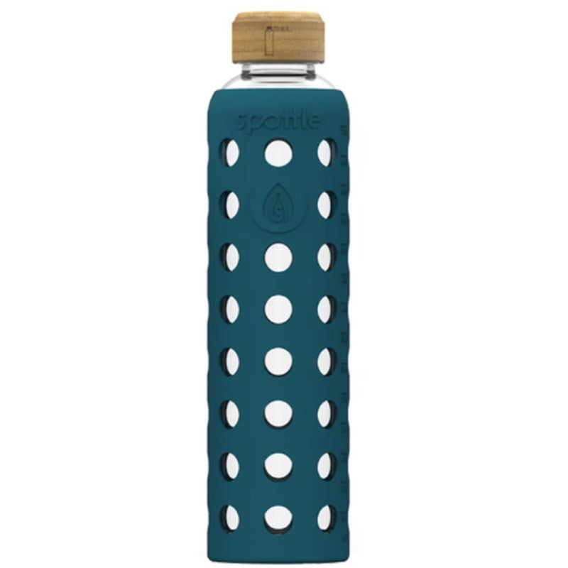 Spottle | Glasflasche mit Silikonhülle petrol, Bambusdeckel