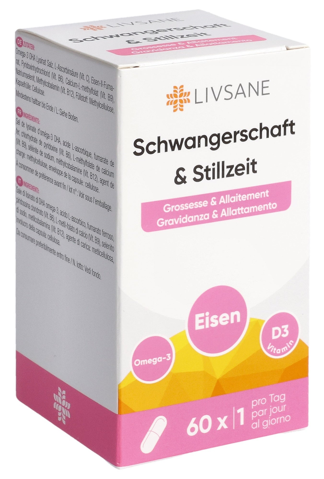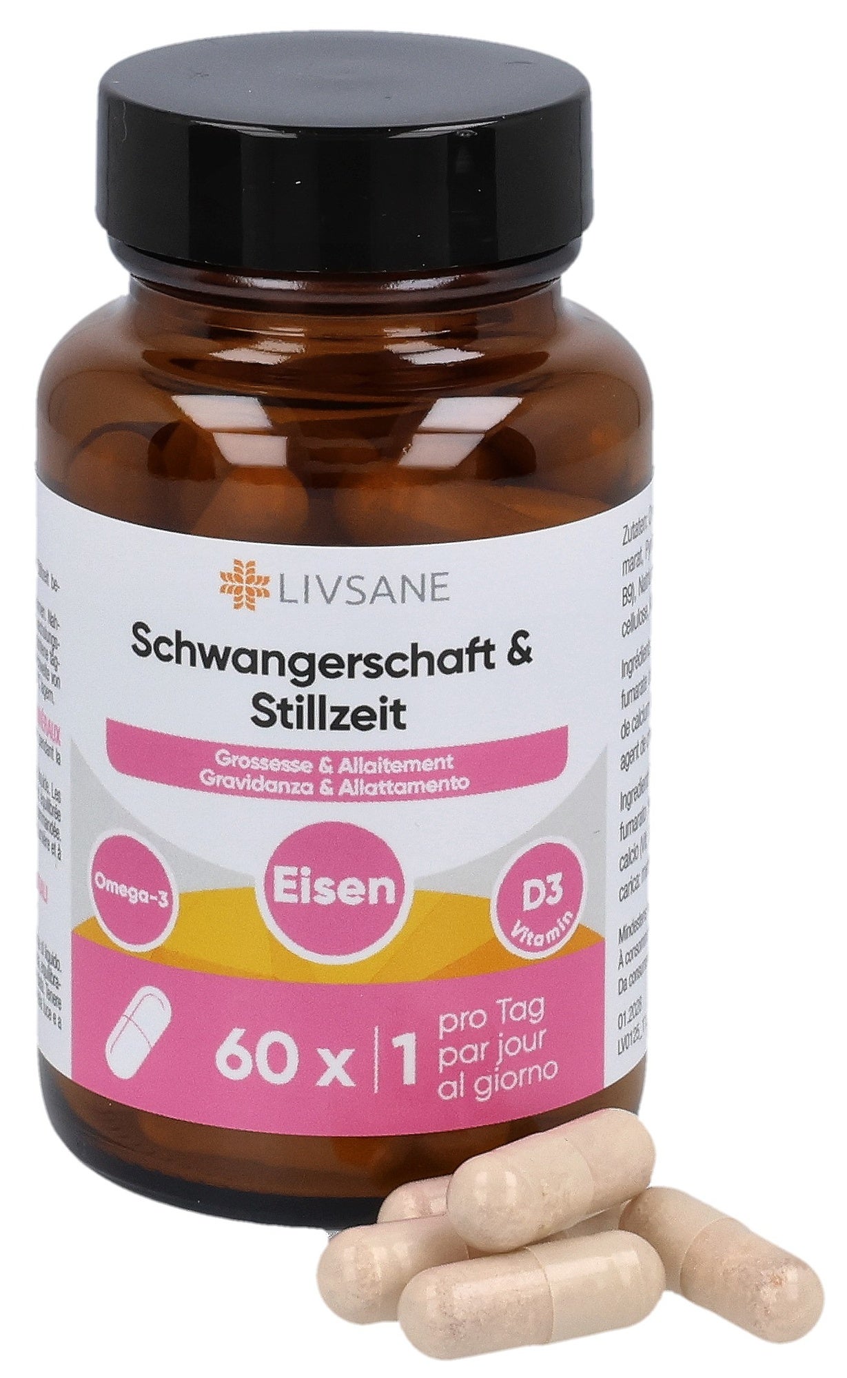 LIVSANE Grossesse & AllaitementContient des nutriments essentiels qui sont particulièrement importants pendant la grossesse et l’allaitement.