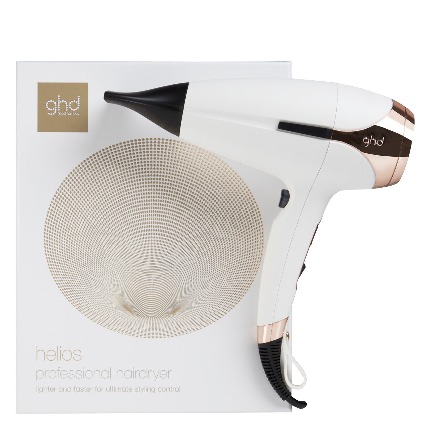 REINE DE LA TOUTE PUISSANCE. Découvrez ghd helios™, la dernière innovation ghd développée par les équipe d'experts composée de physiciens, ingénieurs et coiffeurs professionnels. Optez pour ce bijou de technologie pour un contrôle absolu du coiffage et 30% de brillance en plus. Avec le sèche-cheveux ghd helios™ blanc, obtenez un brushing parfaitement lisse en un temps record et passez plus de temps à conquérir le monde. Ce sèche-cheveux de qualité professionnelle est doté de la technologie Aeroprecis™ qui, grâce à son moteur Brushless robuste, crée un flux d'air puissant de 120km/h. Concentré dans l'aérodynamique interne du sèche-cheveux, ce flux d'air précis vous assure contrôle du coiffage et rapidité. L'embout concentrateur d'air sur-mesure offre un flux d'air tout en précision et des résultats plus doux, selon 9 personnes sur 10. Léger et avec un poids mieux réparti pour gagner en confort de coiffage, le design de ghd helios™ vous offre encore plus de maniabilité afin d'obtenir des résultats de qualité professionnelle. Passez au brushing haut de gamme avec ghd helios™.