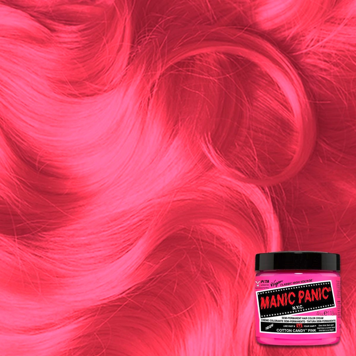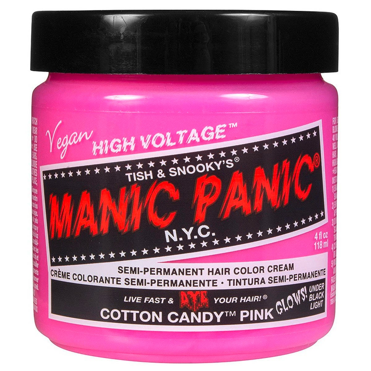 La coloration semi-permanente High Voltage Classic de Manic Panic comprend une multitude de nuances lumineuses. Les ingrédients de qualité utilisés garantissent que tu obtiendras un résultat de coloration de haute qualité. Les ingrédients soignants de la formule conditionnent les cheveux pendant la coloration et garantissent ainsi un fini soyeux et brillant ainsi qu'une sensation de douceur. Cotton Candy Pink est un beau rose néon clair et frais. Cette teinte brille sous la lumière noire. Nous recommandons donc d'utiliser Cotton Candy Pink sur des cheveux qui ont été préalablement éclaircis au degré de blond 9 ou plus clair. Caractéristiques importantes :