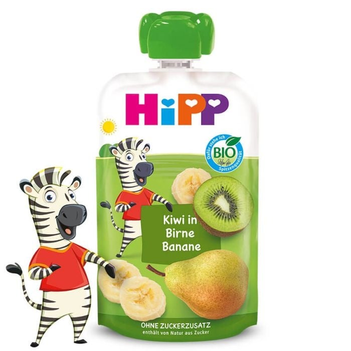 Fruits* 100% (poires* 67%, bananes* 20%, kiwi* 13%). *Du mode de production biologique..