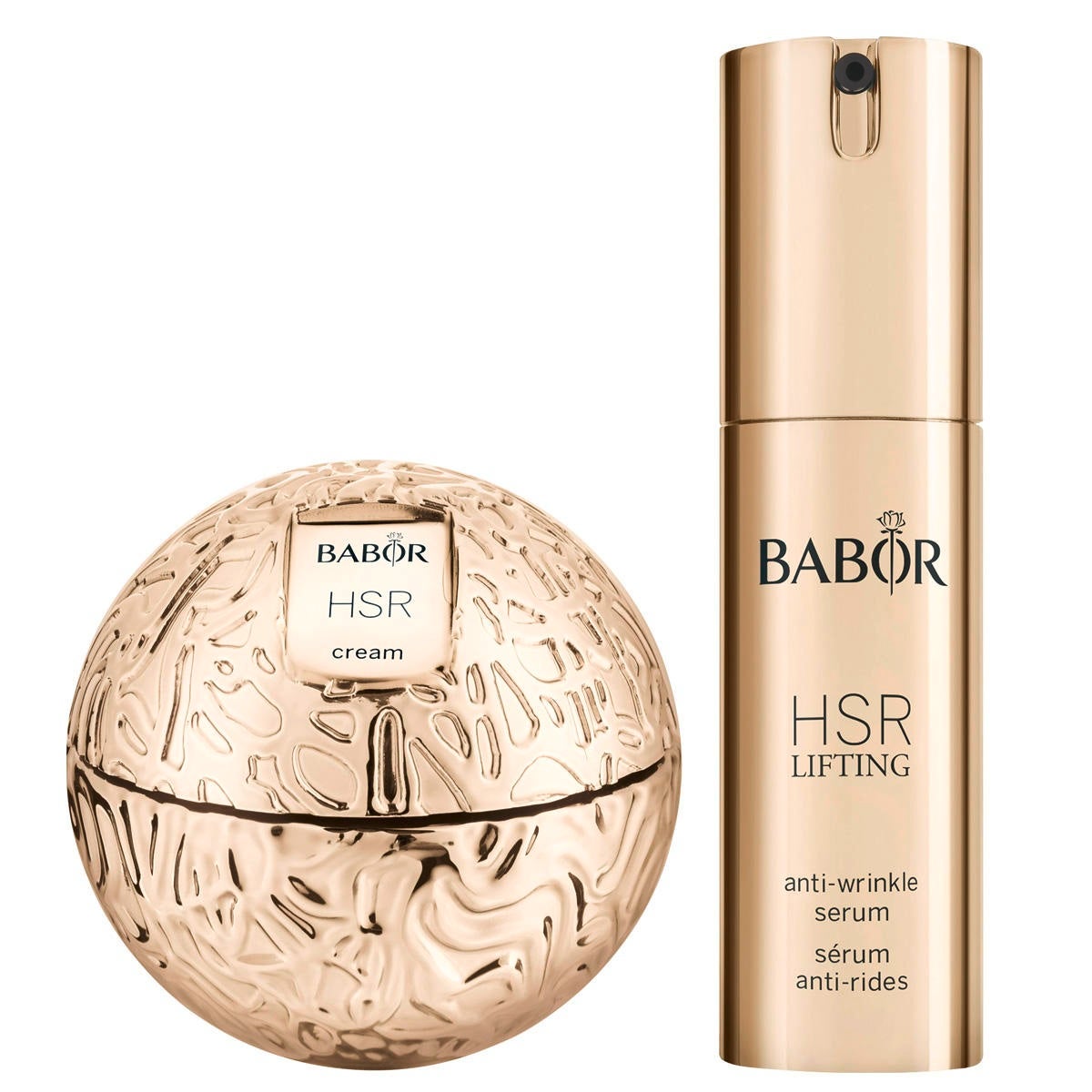 Ce luxueux sérum HSR lifting pose de nouveaux jalons dans le domaine du lifting cosmétique chez BABOR. Le complexe d'actifs HSR lifting agit contre tous les types de rides : rides gravitaires, plissées et d'expression, par exemple les rides du lion et du nasolabial. Les rides formées par la dégradation du collagène et de l'élastine ainsi que par la saccharification des fibres de collagène sont atténuées. L'apparition de nouvelles rides est ralentie par un glucoside naturel. Parallèlement, les hyperpigmentations sont atténuées. Les polysaccharides issus des graines d'épine de miel raffermissent la peau avec un effet visible immédiatement, tout au long de la journée. La peau subit son lifting personnel : elle est visiblement lissée, repulpée et plus ferme. Application : Appliquer matin et/ou soir après le nettoyage sur le visage, le cou et le décolleté et laisser pénétrer légèrement. Appliquer ensuite la crème de soin. Cette luxueuse crème HSR lifting établit, sur la base des résultats de recherche les plus récents, de nouveaux critères dans le domaine du lifting cosmétique chez BABOR. Six substances actives hautement performantes agissent contre tous les types de rides : rides gravitaires, plissées et d'expression, comme par exemple les rides du lion et les sillons nasogéniens. Les rides formées par la dégradation du collagène et de l'élastine ainsi que par la saccharification des fibres de collagène sont atténuées. L'apparition de nouvelles rides est ralentie par un glucoside naturel, de sorte que la peau paraît plus jeune plus longtemps. Parallèlement, le teint est unifié et les hyperpigmentations sont atténuées. La peau subit son propre lifting : elle est visiblement lissée, repulpée et plus ferme. Application : Appliquer matin et soir sur le visage, le cou et le décolleté après avoir nettoyé le visage. Utiliser comme soin 24h ou comme crème de jour en combinaison avec la crème extra-forte riche.