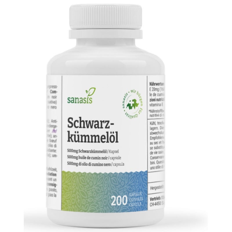 Complément alimentaire à base de graines de cumin noir pressées à froid avec ménagement. (Nigella sativa).