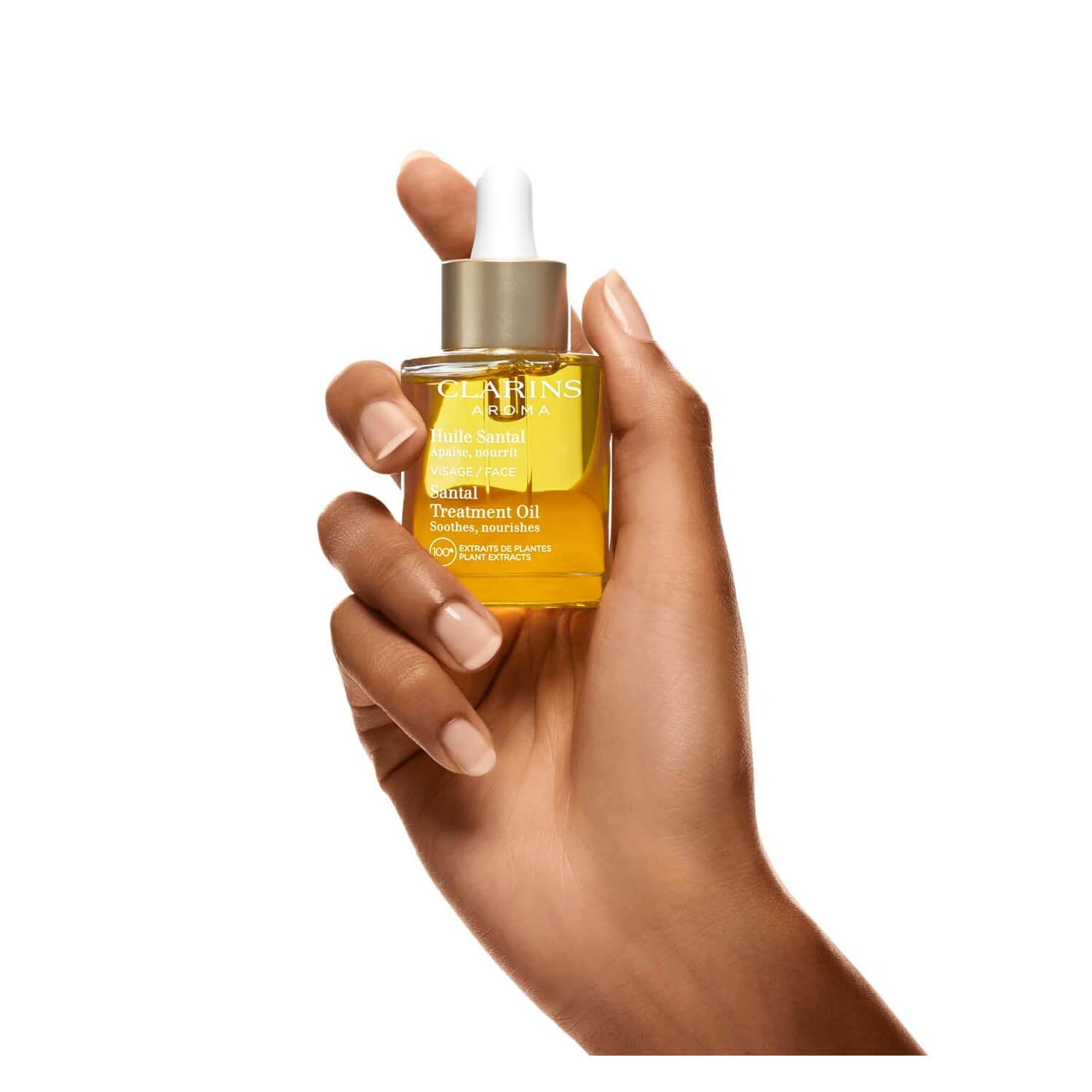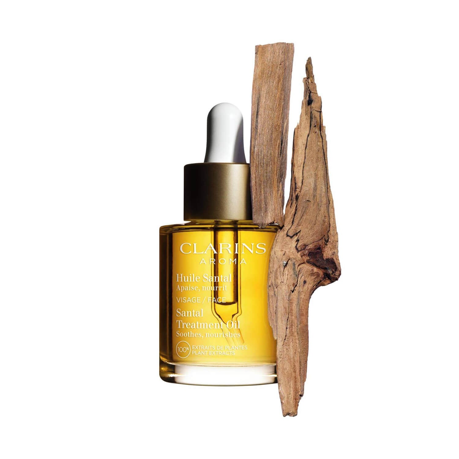 Cette huile pour le visage est un soin confort apaisant pour les peaux sèches à très sèches. Les huiles essentielles Clarins de Santal, Cardamome et Lavande tonifient, apaisent et calment la peau. L'Huile de Noisette nourrissante prévient la déshydratation de la peau. 100 % purs extraits de plantes.
