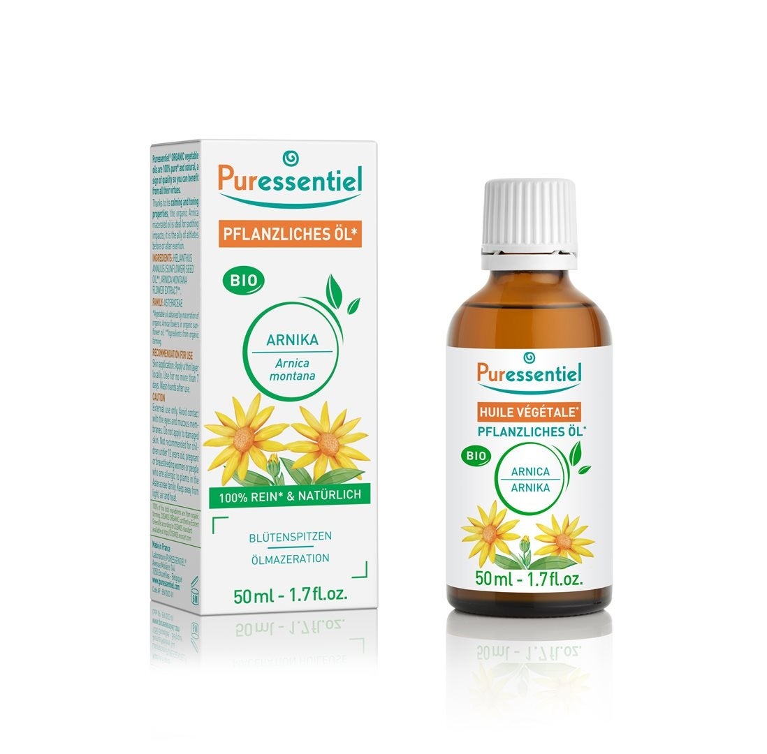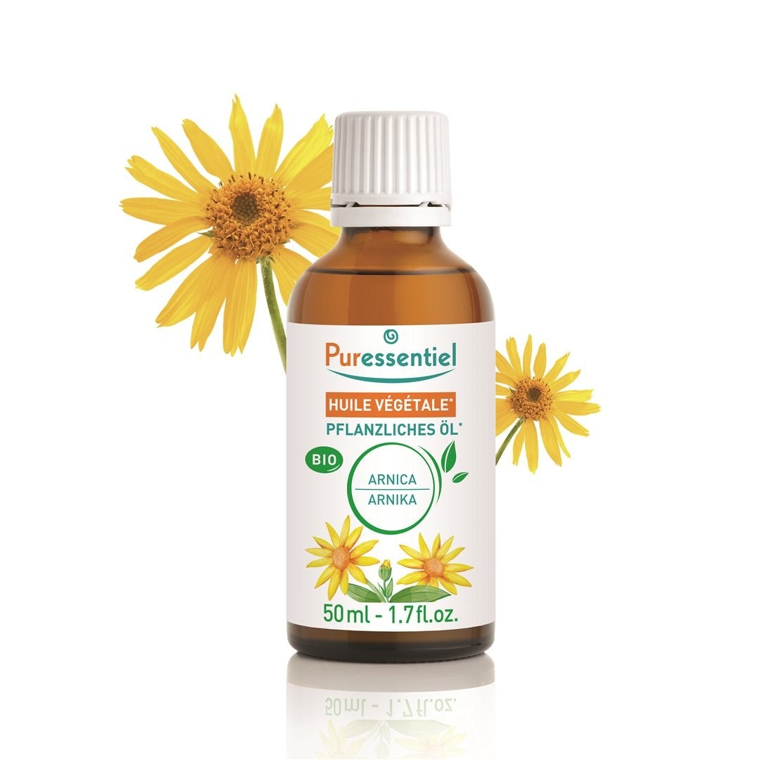 Puressentiel Lhuile végétale darnica bio est obtenue par macération de fleurs darnica bio dans de lhuile végétale de tournesol bio et est 100% pure et naturelle. Jaune orangé dans le Farbe, cette huile a une odeur douce et légère.