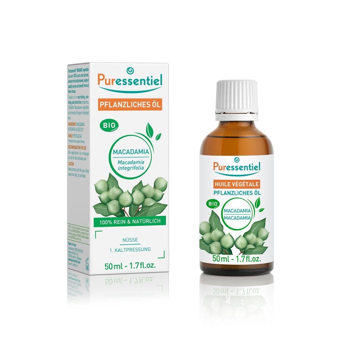 Lhuile végétale de macadamia bio est 100% pure et naturelle et provient de lagriculture biologique. Extraite de la noix de macadamia, elle a une couleur jaune pâle à jaune foncé Farbe. Son odeur sucrée rappelle celle de la noisette.