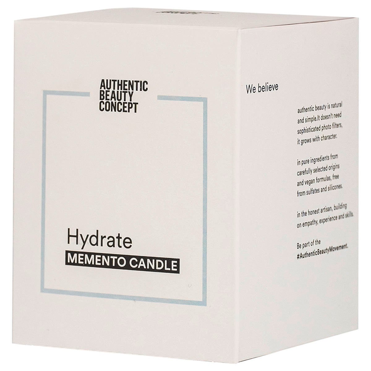 La bougie Memento Concept Authentic Beauty Hydrate, au parfum doux comme du coton, évoque la sensation d'apesanteur d'un nuage flottant grâce à l'association d'un bouquet floral unique de notes délicates et de qualité supérieure de fleurs blanches, de mangue et de basilic sur un subtil mélange de notes poudrées et vanillées.