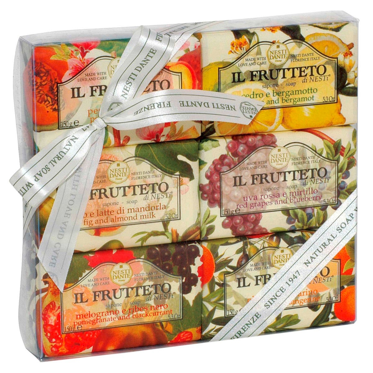 SODIUM PALMATE (Aqua, Glycerin, Sodium Chloride), SODIUM COCOATE/SODIUM PALMKERNELATE, PARFUM (Citronellol, Limonene, Hexyl Cinnamal, Linalool, Geraniol, Citral, Coumarin, Benzyl Salicylate, Hidroxy Citronellal, Benzyl Alcohol, Amyl Cinnamal), Citrus limonum, Hidrolyzed Sweet Almond Protein, Punica Granatium, Ribes Nigrum, Vitis Vinifera, Vaccinium Myrtillis, Prunus Pesca, Cucumis Melo, Olea Europaea, TETRASODIUM ETIDRONATE.
