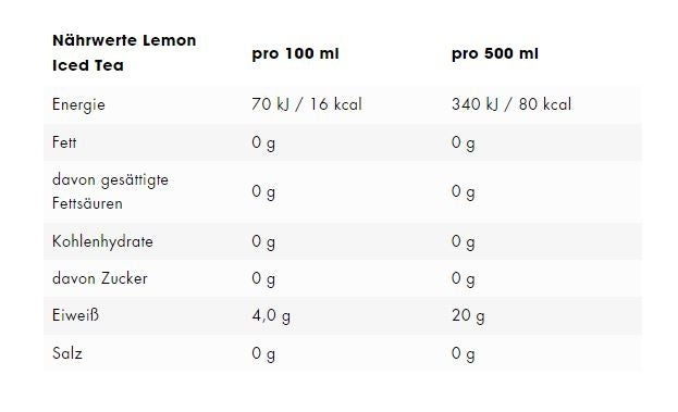Eau, isolat de protéines de lactosérum 4,6 %, arôme, édulcorants (sucralose, acésulfame K), colorant (caramel).