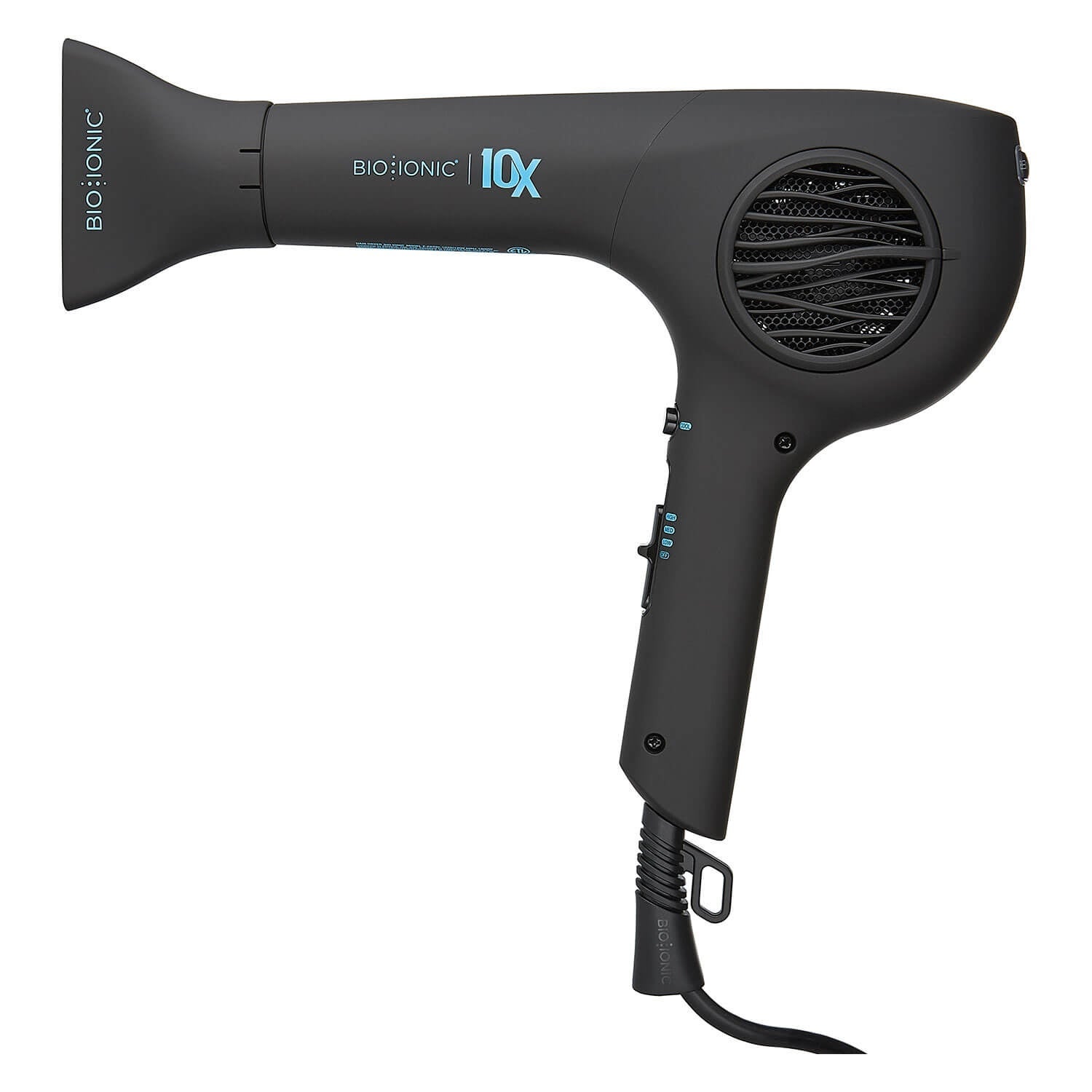 Le séchoir 10X de Bio Ionic avec une longueur de câble de 2,75m séchera vos cheveux en moins de 10 minutes! Son moteur EcoDrive sans balais breveté est ultra-léger, permettant au séchoir de peser moins de 1 lb et d'utiliser 75% moins d'électricité que les sécheuses conventionnelles. Le minéral naturel de roche volcanique infusé dans le baril hydrate les cheveux de l'intérieur vers l'extérieur en émettant des ions négatifs naturels qui entraînent les molécules d'eau profondément dans les cheveux avec une puissance de 1800 watts. Les cheveux sont conditionnés à l'intérieur et la couche externe des cuticules devient polie et lisse, pour des cheveux sains et hydratés. La chaleur infrarouge lointaine accélère le temps de séchage.
