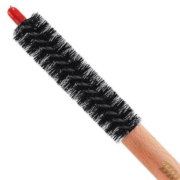 Brosse forme bouteille, poils nylon mélangés, avec manche rond en bois et pointe pour séparation.