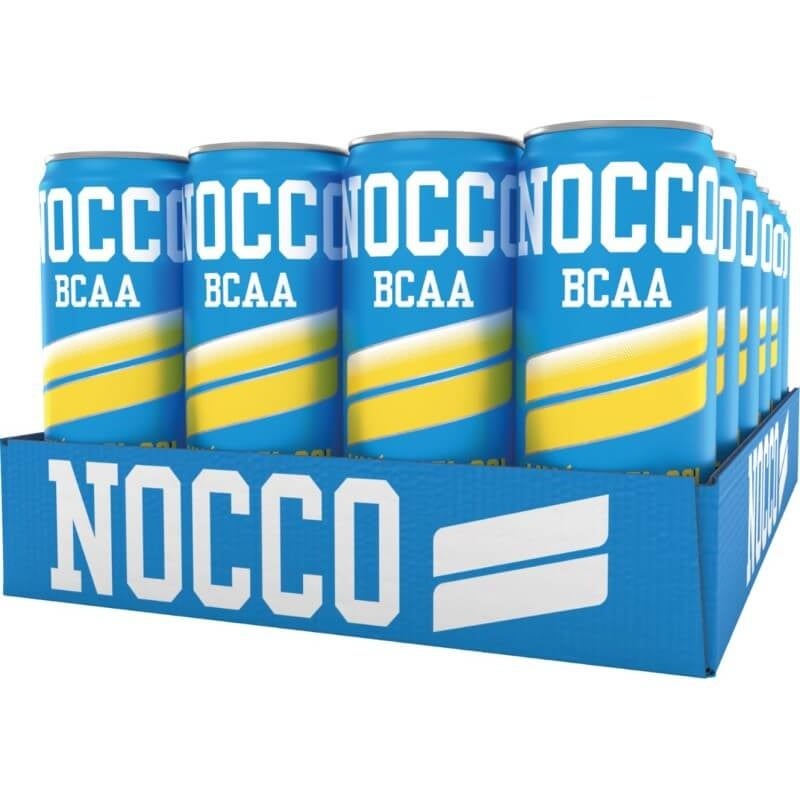 NOCCO est la marque de boissons pour sportifs à base de BCAA qui connaît la croissance la plus rapide en Europe! Tous les produits NOCCO contiennent des protéines sous forme de BCAA (acides aminés à chaîne ramifiée), sont sans lactose, sans glucides et donc sans sucre! Les BCAA sont trois acides aminés essentiels: la leucine, la valine et lisoleucine. Ceux-ci ne peuvent pas être produits indépendamment par le corps humain et doivent donc être fournis par le biais des aliments. Les acides aminés à chaîne ramifiée sont essentiels pour la construction, lexpansion et la protection des muscles. Ils aident également à retarder la fatigue pendant les activités sportives.