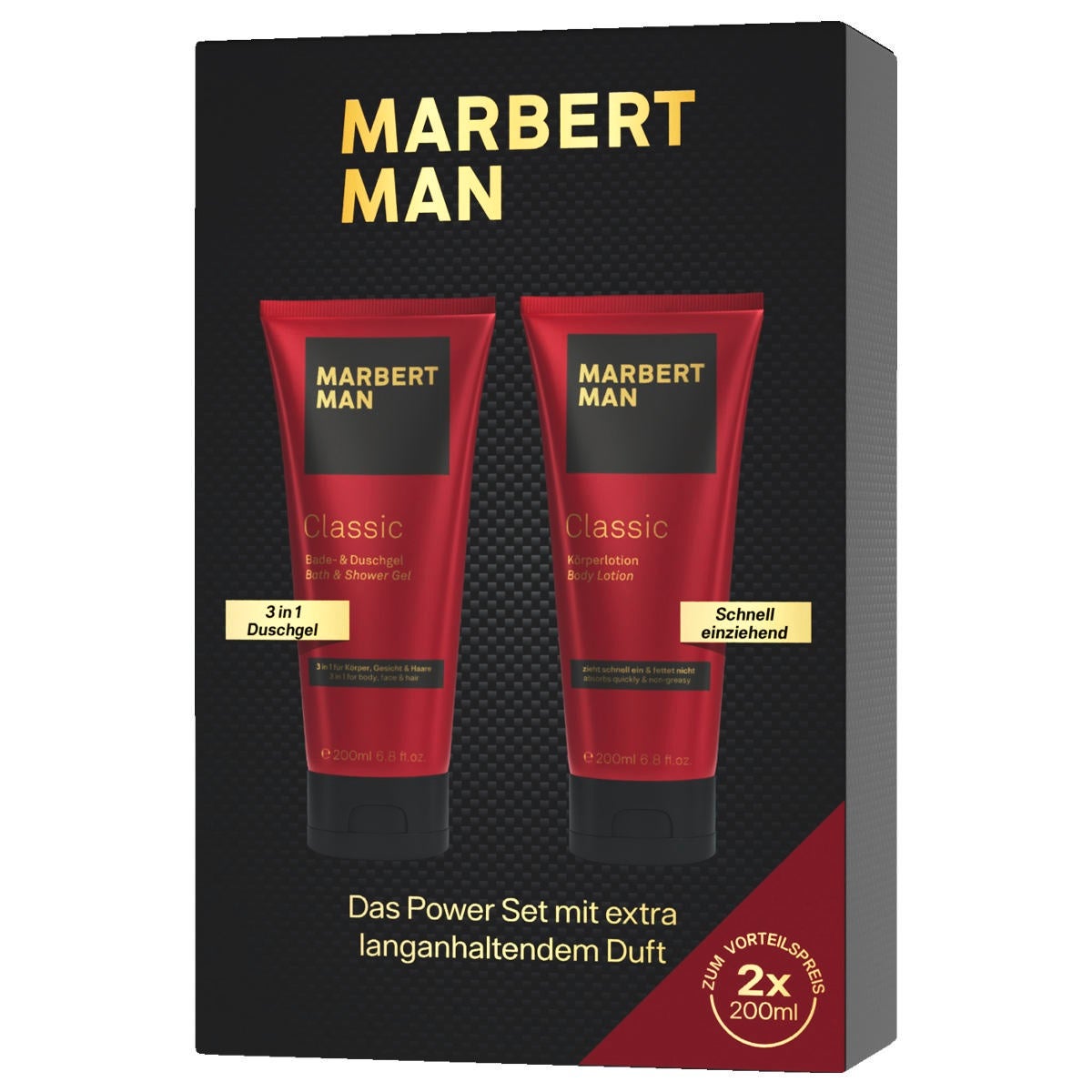 Man Classic Set - Le set puissant au parfum extra-longue durée composé d'un gel bain & douche et d'une lotion corporelle. Ce set contient :