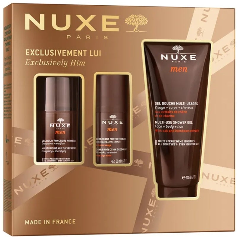 " MULTIFUNKTIONS-FEUCHTIGKEITSGEL INGREDIENTS : AQUA/WATER, GLYCERIN, DICAPRYLYL CARBONATE, HYDROLYZED ADANSONIA DIGITATA EXTRACT, DIMETHICONE, HYDROXYETHYL UREA, ACRYLATES/C10-30 ALKYL ACRYLATE CROSSPOLYMER, MACADAMIA INTEGRIFOLIA SEED OIL, BUTYLENE GLYCOL, BENZYL ALCOHOL, CAPRYLOYL GLYCINE, SODIUM HYDROXIDE, PARFUM/FRAGRANCE, RIBOSE, TOCOPHERYL ACETATE, CITRIC ACID, ALLANTOIN, DIMETHICONE CROSSPOLYMER, ALCOHOL, TETRASODIUM EDTA, DEHYDROACETIC ACID, PENTYLENE GLYCOL, ENANTIA CHLORANTHA BARK EXTRACT, SODIUM HYALURONATE, CAPRYLYL GLYCOL, XANTHAN GUM, TOCOPHEROL, QUERCUS ROBUR BARK EXTRACT, OLEANOLIC ACID, TETRAMETHYL ACETYLOCTAHYDRONAPHTHALENES, CEDRUS ATLANTICA OIL/EXTRACT, ACETYL CEDRENE, LINALYL ACETATE, LIMONENE, POGOSTEMON CABLIN OIL, PELARGONIUM GRAVEOLENS FLOWER OIL [N3404/C] 24H DEODORANT-SCHUTZ INGREDIENTS : AQUA/WATER, SALVIA OFFICINALIS (SAGE) LEAF WATER, DECYL OLEATE, BUTYLENE GLYCOL, GLYCERIN, SILICA [NANO], GLYCERYL CAPRATE, ETHYLHEXYLGLYCERIN, ARACHIDYL ALCOHOL, CETEARYL ALCOHOL, PARFUM/FRAGRANCE, CAPRYLOYL GLYCINE, MACADAMIA INTEGRIFOLIA SEED OIL, SODIUM BENZOATE, BEHENYL ALCOHOL, CITRIC ACID, SODIUM HYDROXIDE, ARACHIDYL GLUCOSIDE, XANTHAN GUM, ALLANTOIN, CETEARYL GLUCOSIDE, PHYTIC ACID, HYDROLYZED ADANSONIA DIGITATA EXTRACT, ACRYLATES/C10-30 ALKYL ACRYLATE CROSSPOLYMER, BENZYL ALCOHOL, DEHYDROACETIC ACID, PENTYLENE GLYCOL, CAPRYLYL GLYCOL, TETRAMETHYL ACETYLOCTAHYDRONAPHTHALENES, CEDRUS ATLANTICA OIL/EXTRACT, ACETYL CEDRENE, LINALYL ACETATE, LIMONENE, POGOSTEMON CABLIN OIL, PELARGONIUM GRAVEOLENS FLOWER OIL, CITRONELLOL, LINALOOL [N3402/D] MULTIFUNKTIONS-DUSCHGEL INGREDIENTS : AQUA/WATER, SODIUM LAURYL SULFATE, COCO-GLUCOSIDE, GLYCERIN, PARFUM/FRAGRANCE, SODIUM COCOAMPHOACETATE, PHENOXYETHANOL, GLUCONOLACTONE, ACRYLATES/C10-30 ALKYL ACRYLATE CROSSPOLYMER, LAURYL GLUCOSIDE, SODIUM COCOYL GLUTAMATE, SODIUM HYDROXIDE, SODIUM LAURYL GLUCOSE CARBOXYLATE, SODIUM BENZOATE, CITRIC ACID, HYDROXYPROPYL GUAR HYDROXYPROPYLTRIMONIUM CHLORIDE, TETRASODIUM EDTA, 1,2-HEXANEDIOL, CAPRYLYL GLYCOL, GLYCERYL OLEATE, ALCOHOL, CALCIUM GLUCONATE, TROPOLONE, CARPINUS BETULUS BUD EXTRACT, QUERCUS ROBUR BARK EXTRACT, HYDROGENATED PALM GLYCERIDES CITRATE, TOCOPHEROL, LIMONENE [N1905/A]"