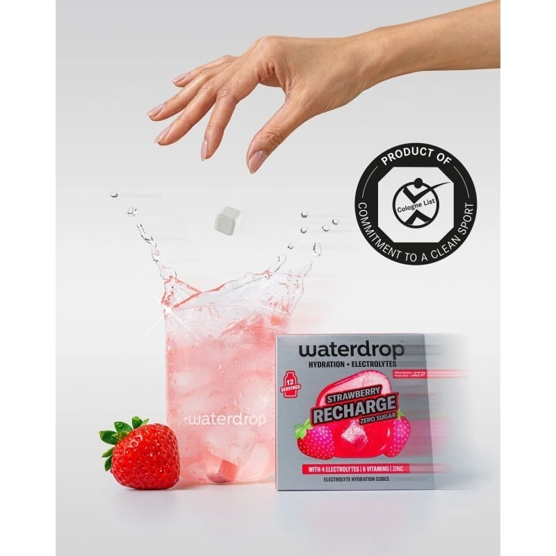 Brausewürfel zur Herstellung eines Elektrolytgetränks mit Erdbeergeschmack aus natürlichen Aromen mit Vitaminen, Mineralstoffen, Zink und mit Süßungsmittel.