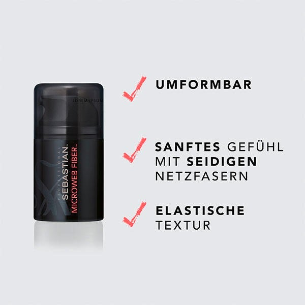 Texturiseur élastique. Peut être formé à tout moment, flexibilité extrême. Ce nouveau texturiseur est un must pour les cheveux fins. Ses fibres sont capables de former l'aspect désiré. Les résultats sont des styles époustouflants. Fibre Microweb : La texture remodelable avec des fibres à mailles soyeuses définit des styles phénoménaux pour chaque texture et longueur de cheveux. Mode d'emploi : Frottez uniformément dans les mains. Répartissez les fibres dans les cheveux secs pour créer une séparation, une texture et un mouvement souple. Pétrissez, pressez ou tordez les cheveux pour obtenir une texture supplémentaire. Sebastian Form - Texturisation du style. Les produits coiffants pour la mise en forme des cheveux répondent aux besoins, aux formes et aux re-styles les plus divers. Ils donnent aux cheveux de l'éclat, une longue tenue et leur donnent la forme souhaitée.