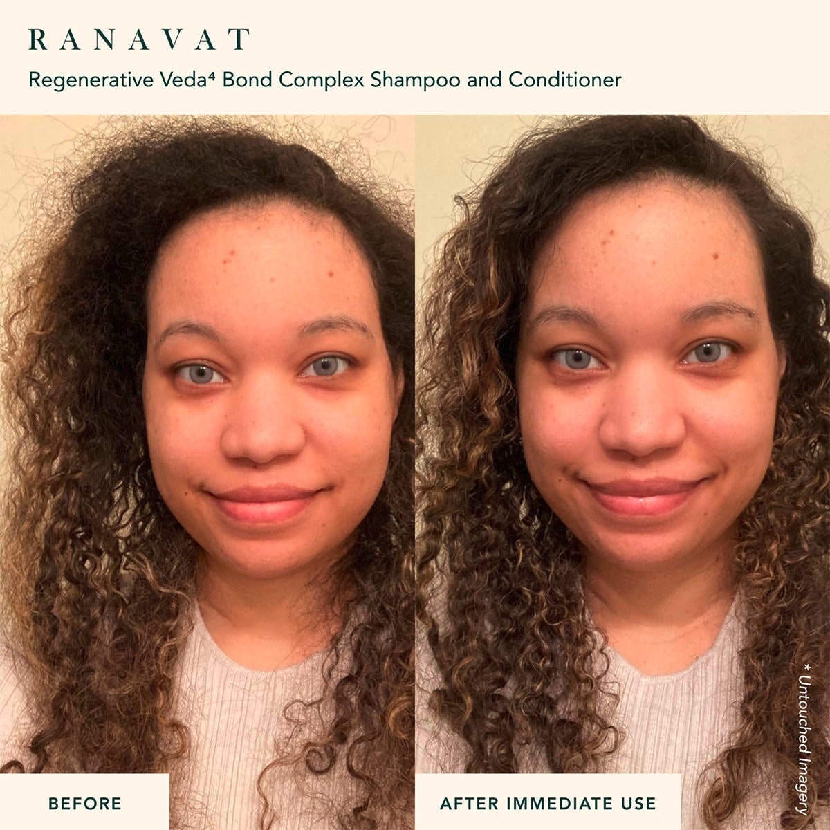 Utilisation : Humidifiez les cheveux avant de faire mousser 2 à 3 pressions de shampooing dans vos mains. Masser soigneusement le cuir chevelu. Rincez abondamment. Pour de meilleurs résultats, utiliser ensuite le conditionneur régénérateur Veda⁴ Bond Complex. Prouvé scientifiquement. Enraciné dans les rituels. Soins ayurvédiques + adaptogènes, cliniquement prouvés pour la peau et les cheveux. Fondée en 2017, RANAVAT utilise la puissance et la science éprouvée de l'ayurvéda et des adaptogènes pour créer des produits de soins de la peau et des cheveux luxueux et cliniquement prouvés.