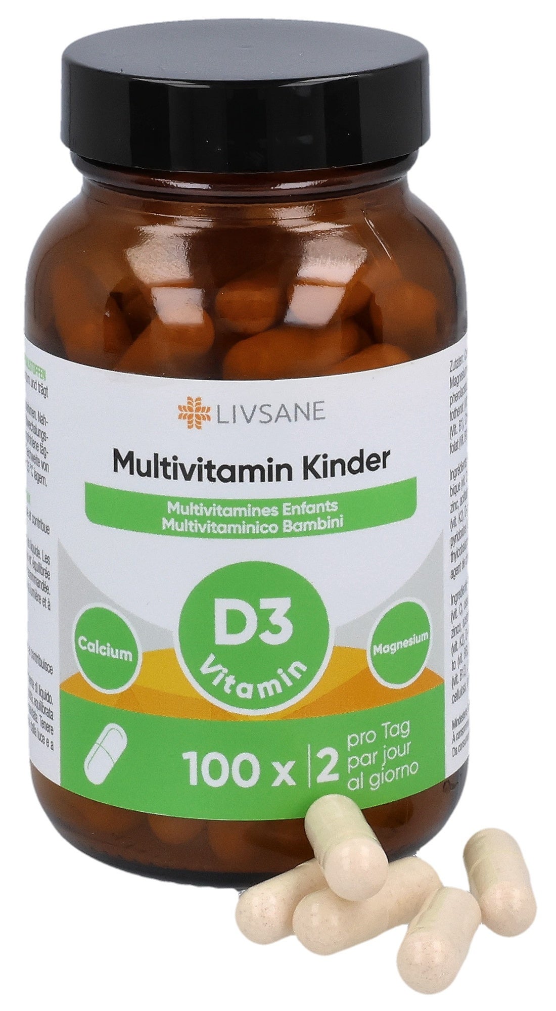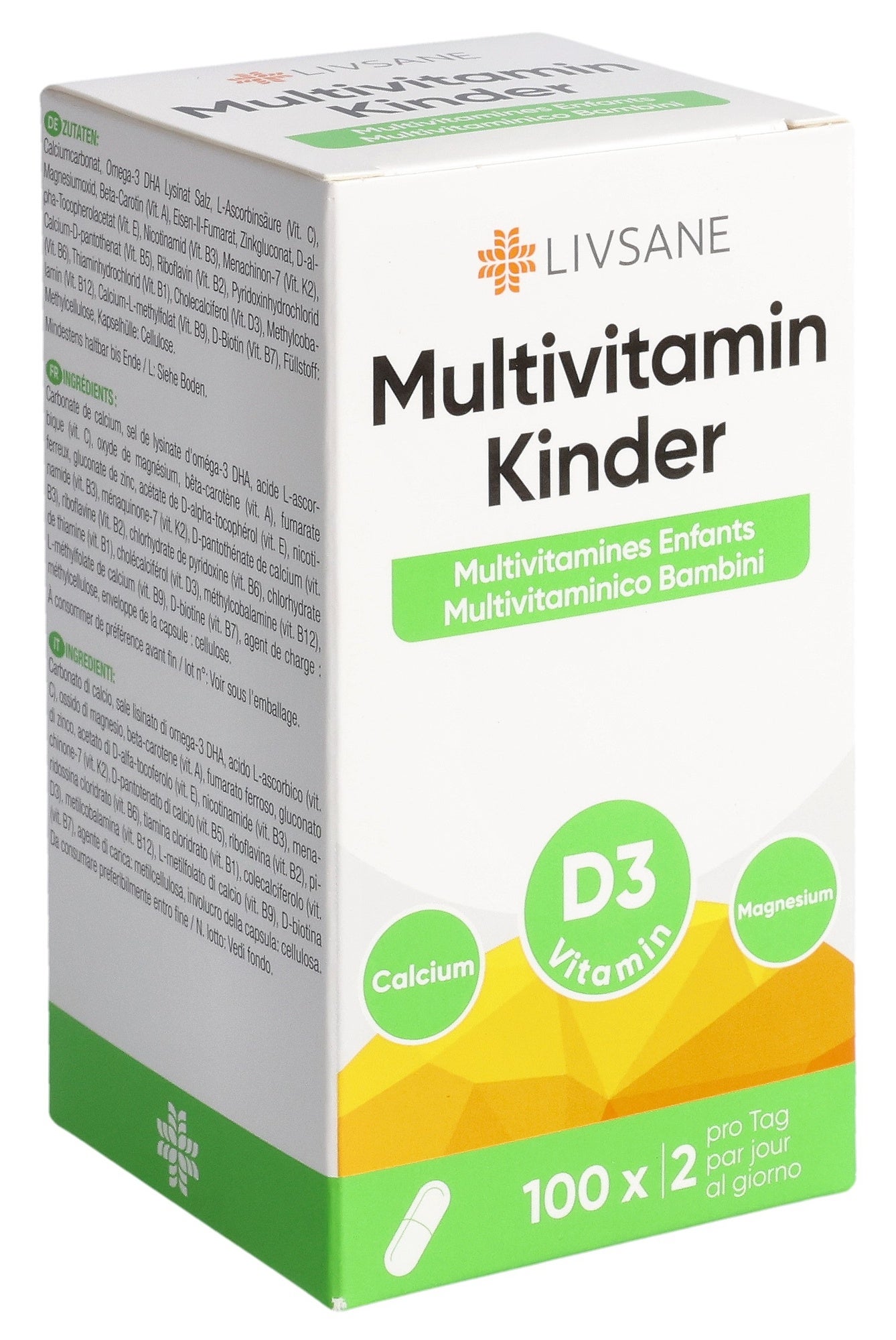 LIVSANE Multivitamines Enfants capsFavorise un système immunitaire sain, soutient la croissance osseuse et contribue à la production d’énergie – spécialement formulé pour les enfants.