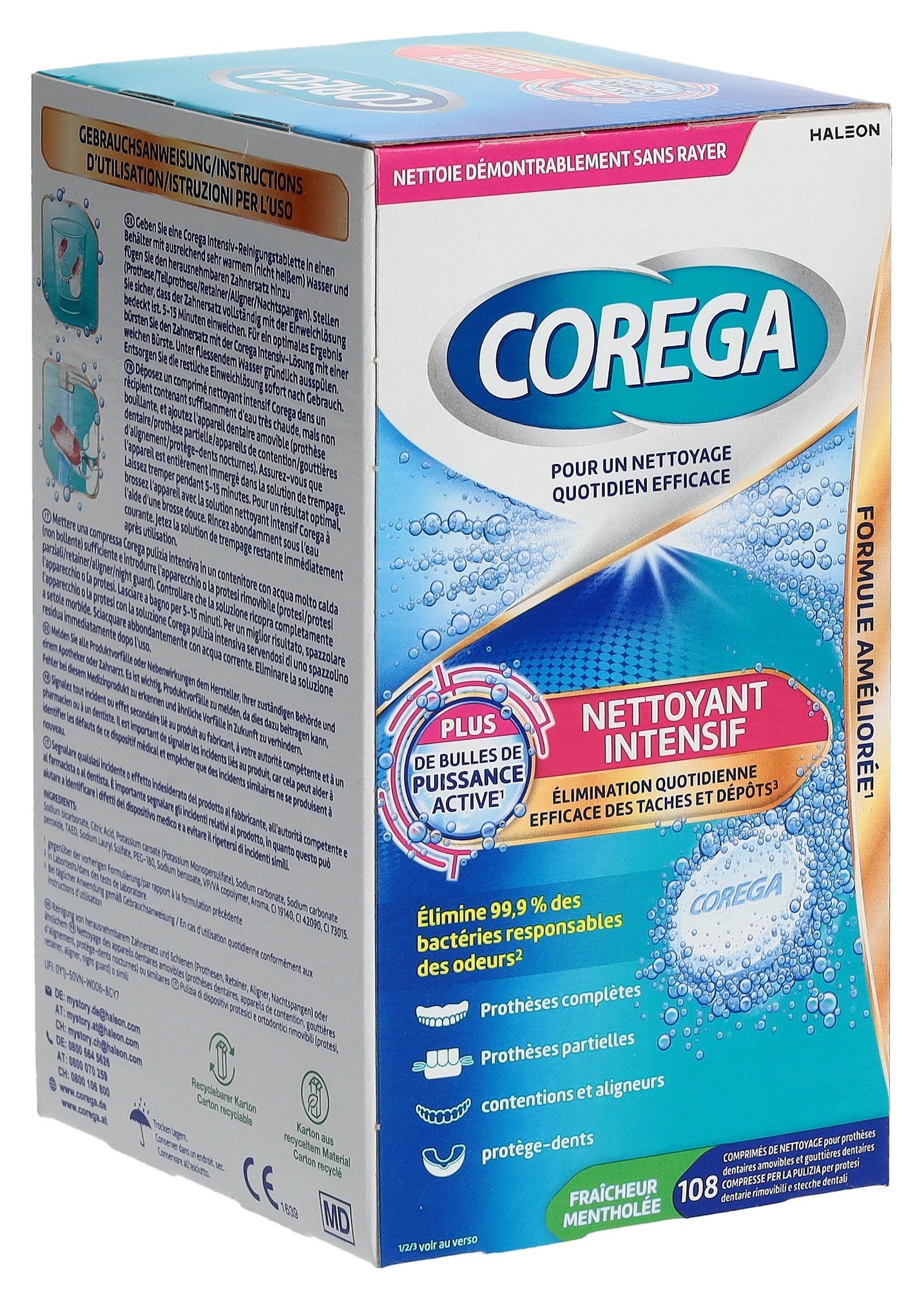 Sodium Bicarbonate, Citric Acid, Potassium Caroate (Potassium Monopersulfate), Sodium Carbonate Peroxide, Sodium Carbonate, TAED, Sodium Benzoate, PEG-180, Sodium Lauryl Sulfate, Aroma, VP/VA Copolymer, Cellulose Gum, CI 42090, CI 73015, CI19140, CI19140.