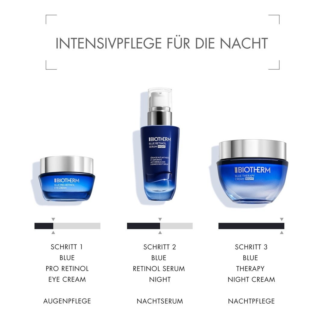 Blue Therapy Night est une crème hydratante qui fournit efficacement des nutriments pour cibler les signes visibles du vieillissement. Matin après matin, réveillez-vous avec une peau d'apparence plus jeune : les ridules semblent plus lisses, les pores semblent resserrés et la peau est plus ferme.
