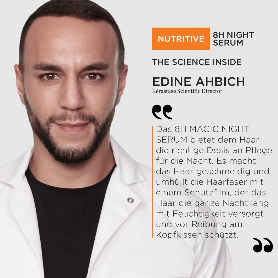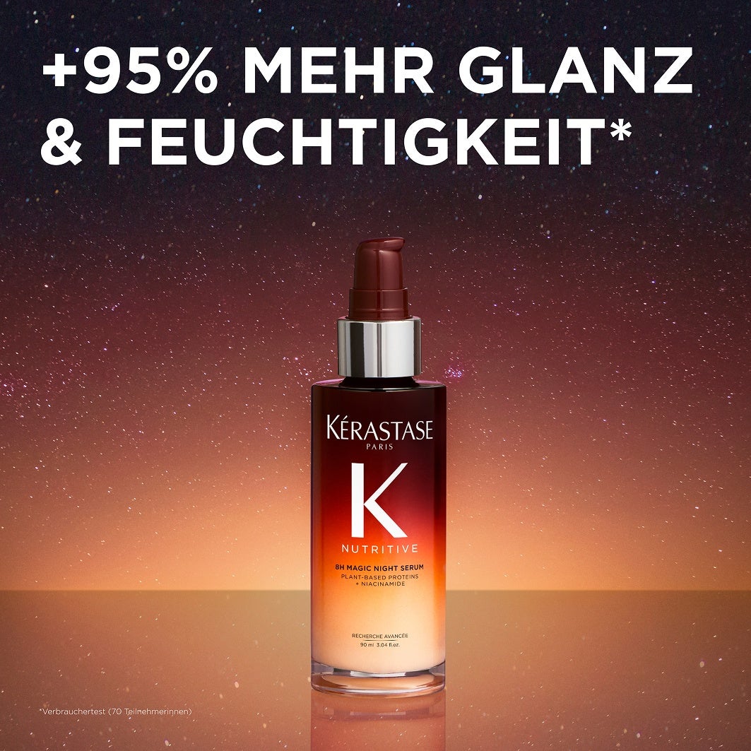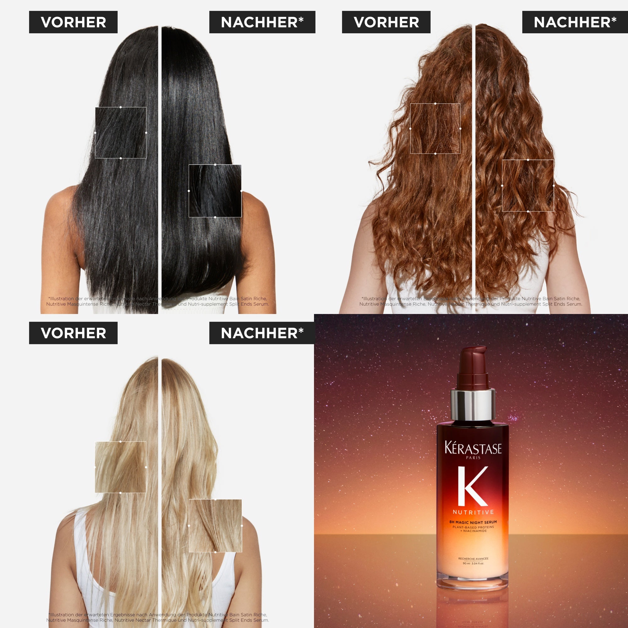 Un sérum magique qui agit pendant 8 heures pour revitaliser et régénérer les cheveux secs: protège contre les frottements d'oreiller; rétablit l'hydratation de la fibre avec une action en profondeur pendant 8 heures; permet de retrouver une fibre capillaire éclatante de jeunesse le lendemain matin; aide à restaurer l'hydratation naturelle des cheveux.