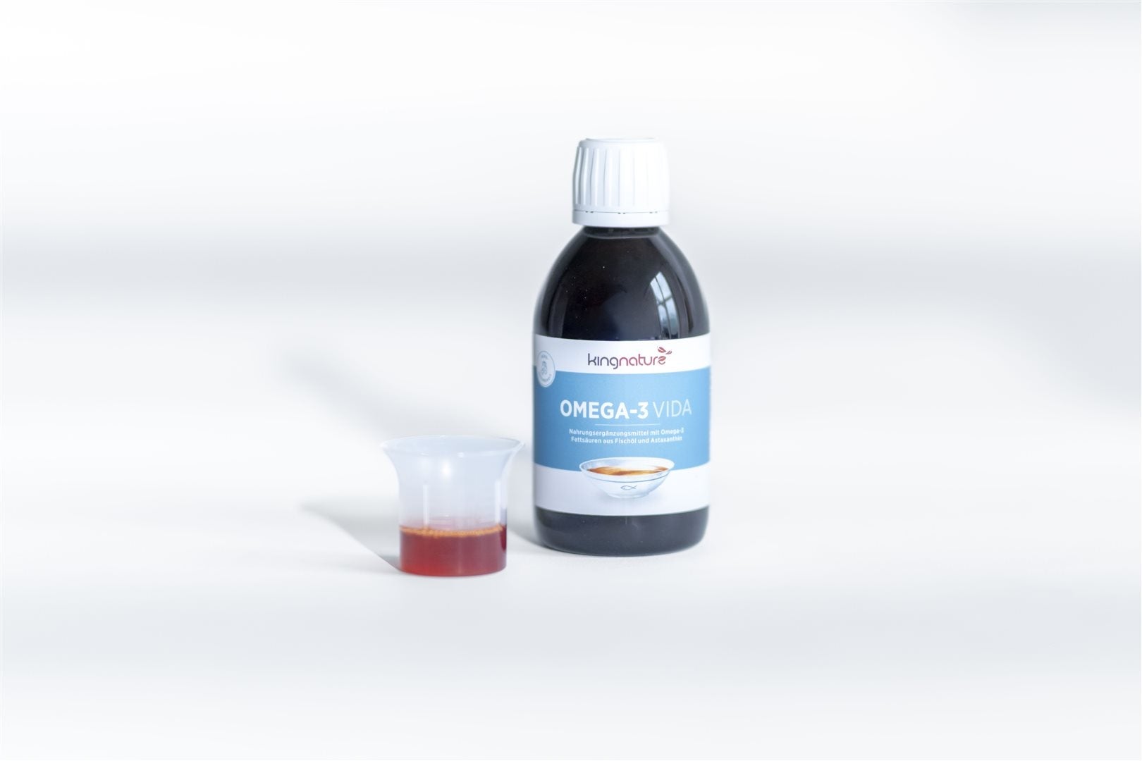 Complément alimentaire contenant des acides gras oméga-3 issus d'huile de poisson et de l'astaxanthine.
