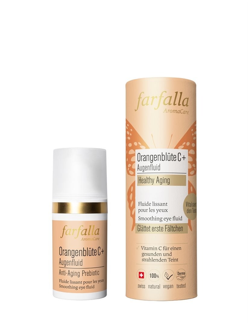 Le Farfalla Fleur doranger C+ Fluide contour des yeux 15ml soigne et revitalise la peau sensible du contour des yeux grâce à une formule douce et hydratante. Enrichi de Vitamin C et dextraits végétaux naturels, il donne à la peau un aspect frais et éveillé et laide à conserver son éclat naturel. Sa texture légère est rapidement absorbée et laisse une agréable sensation de soin, sans être grasse.