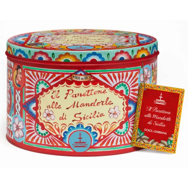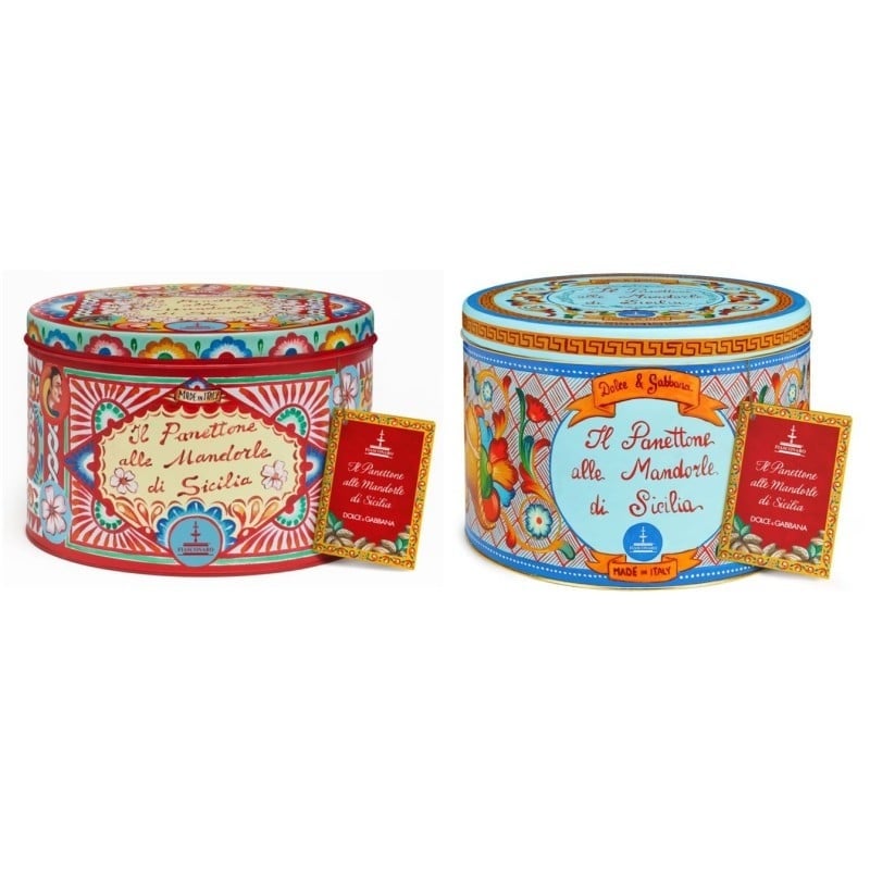 Panettone en édition limitée Dolce & Gabbana. Avec des amandes dans une boîte en fer blanc de qualité supérieure, décorée à la main. Avec chaque panettone, vous recevrez un sac de transport de haute qualité au design unique !