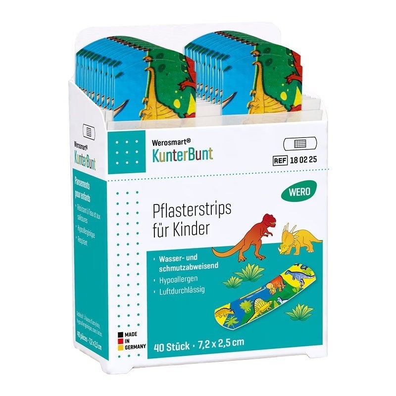 Les distributeurs de pansements pour enfants Werosmart® KunterBunt permettent de soigner rapidement les plaies tout en redonnant le sourire aux tout-petits. Avec des motifs colorés qui plaisent aux enfants, cet ensemble de pansements allie une protection efficace à une impression positive: une distraction bienvenue après un petit accident. Les bandes de pansement élastiques et respirantes s'adaptent parfaitement à la peau, sans serrer ni glisser.