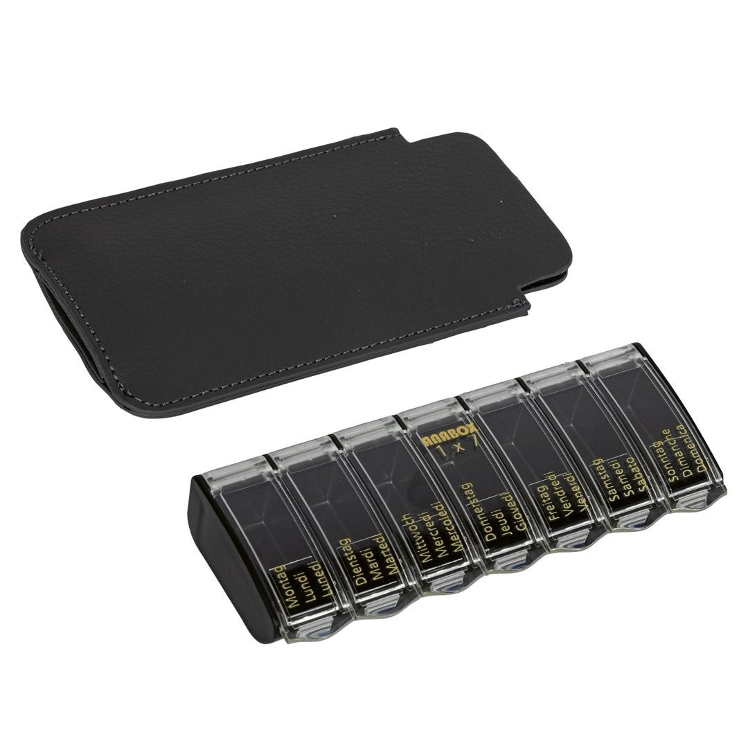 pilulier 1x7 DeLuxe anthracite dans en étui en cuir synthétique