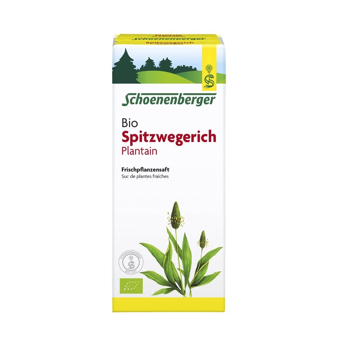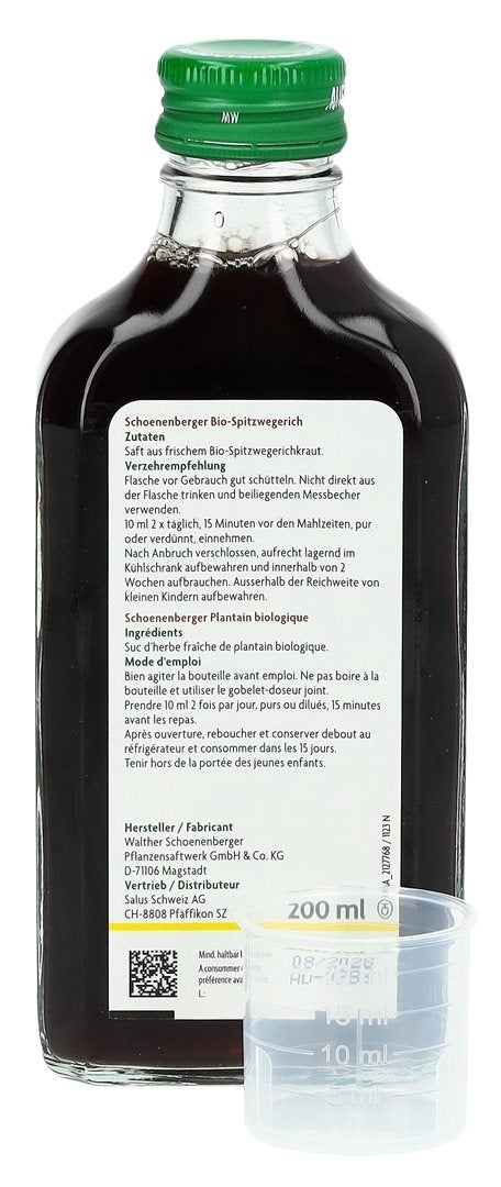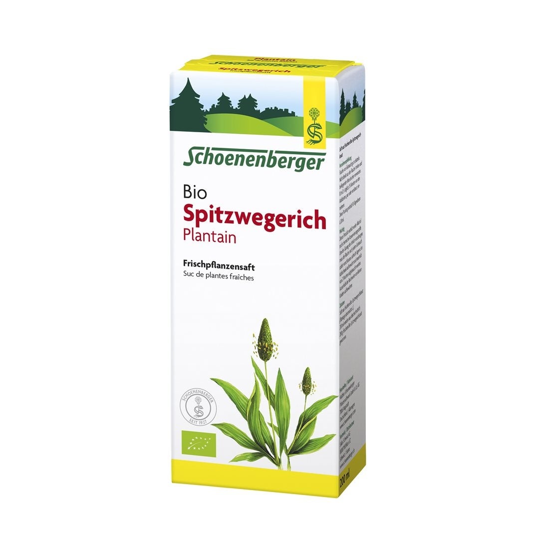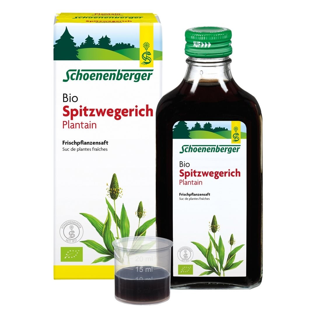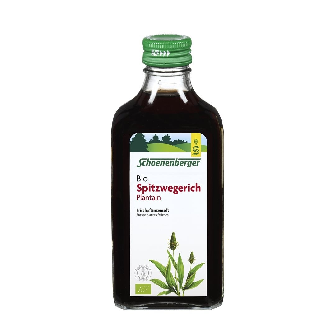 Le Schoenenberger Plantain suc de plantes fraîches est composé de pur jus pressé de plantain bio frais (Plantago lanceolata L.).