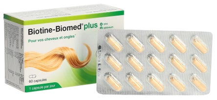 Biotine-Biomed® plus avec biotine, zinc, sélénium, vitamines B, cystine et extrait de millet doré