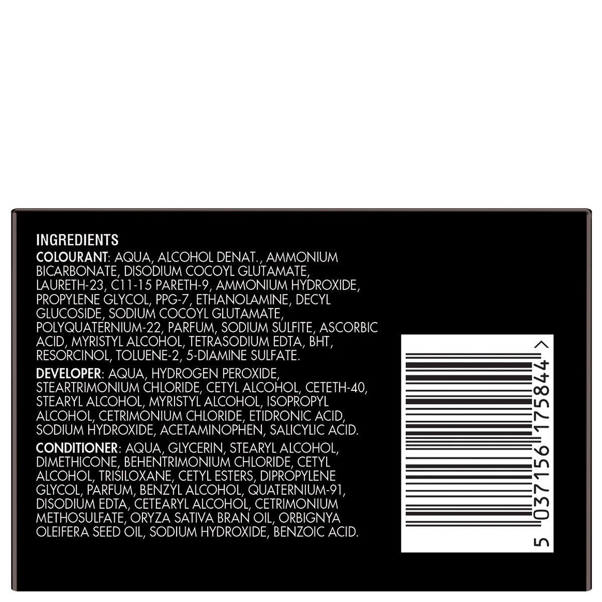 Indications :- AVANT LA COLORATION : ne pas porter d'accessoires et ne pas utiliser d'outils métalliques lors de la coloration des cheveux.Le meilleur résultat est obtenu lorsque les cheveux sont colorés à une température ambiante d'au moins 20°C. Si la couleur entre en contact avec la peau ou des surfaces, absorber immédiatement avec un chiffon humide. Ne pas utiliser le produit pour colorer les cheveux de plus de deux tons plus clairs ou plus foncés. Attendre deux semaines après avoir subi un éclaircissement, une décoloration, une permanente ou un traitement relaxant.