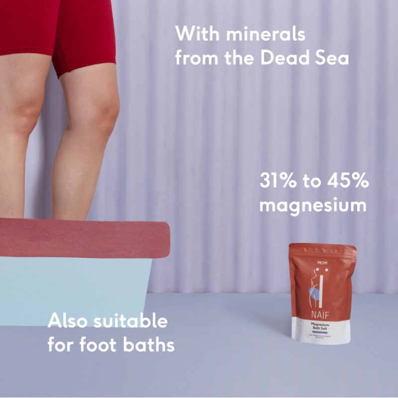 Pendant la grossesse, rien de mieux que de se détendre en apesanteur dans un bain chaud. Le Sel de Bain au Magnésium Naïf vous offre exactement cela : un moment de soin personnel pour vous chouchouter, détendre vos muscles et soulager les crampes. Après le bain, vous vous sentirez rafraîchie et apaisée. Ce sel de bain est exempt d'huiles essentielles, offrant ainsi un soin doux. Son effet apaisant peut contribuer à un meilleur sommeil, exactement ce dont vous avez besoin pendant la grossesse !